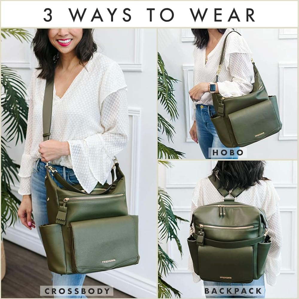 • Fashionable & Functional Design: Switching out your bag from one style to another is simple with this one of a kind design, which allows it to go from a hobo shoulder bag to a backpack with just a few adjustments. Carry it as a hobo for work or brunch with the ladies, and switch gears when out later with the baby. It can even be hung from a stroller, or on top of a luggage handle, which makes this diaper bag incredibly versatile and easy to bring around. 13.25"[H] x 12.5"[W] x 5.5"[D]