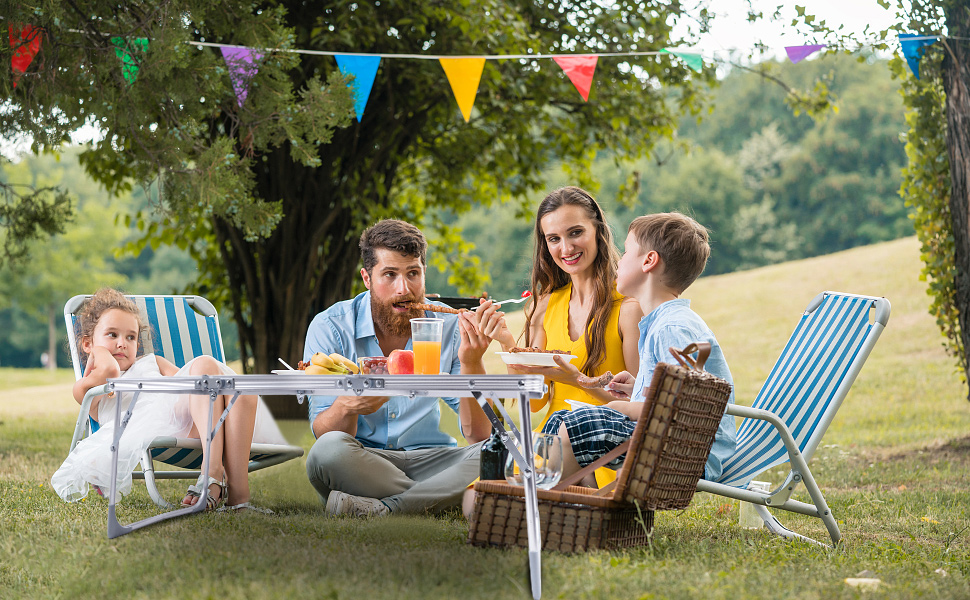 طاولة نزهة خفيفة الوزن قابلة للطي: سطح الطاولة القابل للطي مصنوع من مادة الألومنيوم عالية الجودة، ومساحة السطح الواسعة مثالية لوضع طعامك أو مشروبك أو معدات التخييم. إطار الألومنيوم سهل الفتح والإغلاق في لحظة، سهل التنظيف دون الصدأ، ويمكن استخدامه في الأيام المشمسة أو الممطرة.