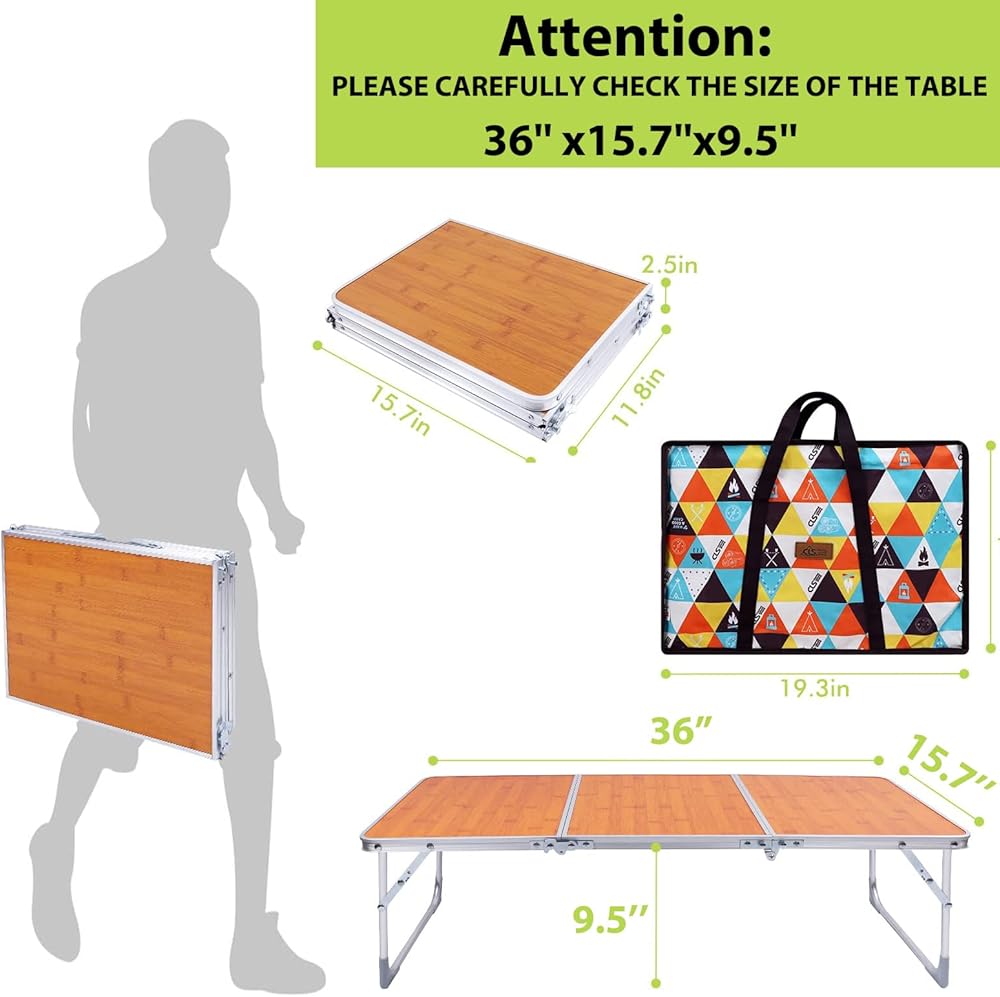 طاولة خارجية: مقاس عبوة طاولة التخييم 17.6 انش × 11.8 انش × 2.3 انش عند طيها إلى نصفين، المقاس المفتوح 35.4 انش × 16 انش × 9.8 انش. يمكنك استخدامها في المناسبات الخارجية التي تتطلب كراسي منخفضة أو النزهات عند استخدام الكراسي ذات الارتفاع العادي.