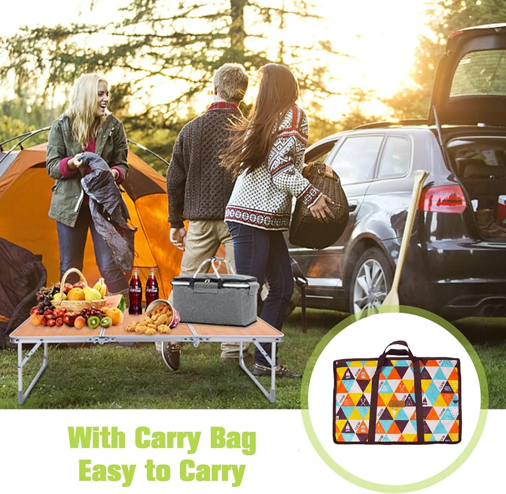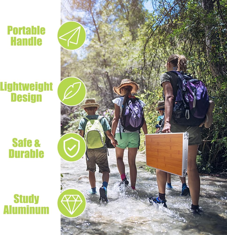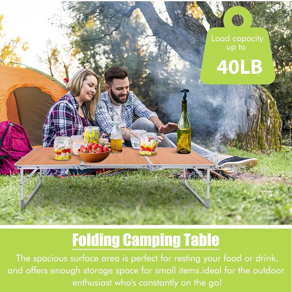طاولة محمولة بثلاث طيات: تزن طاولة النزهة 2.5 كغم فقط، يمكن أن تتحمل الطاولة الصغيرة القابلة للطي ما يصل إلى 55 باوند. تأتي مع حقيبة خارجية متينة من قماش اوكسفورد مع مقبض لنقل مريح ومريح، مثالية لعشاق الهواء الطلق الذين يتنقلون باستمرار!