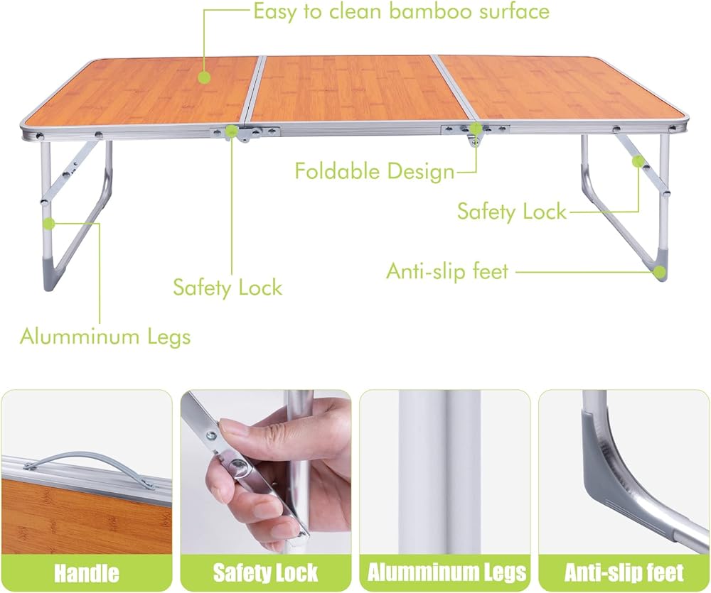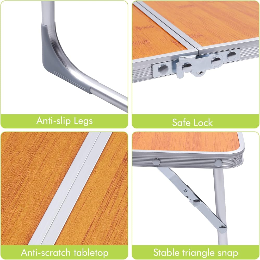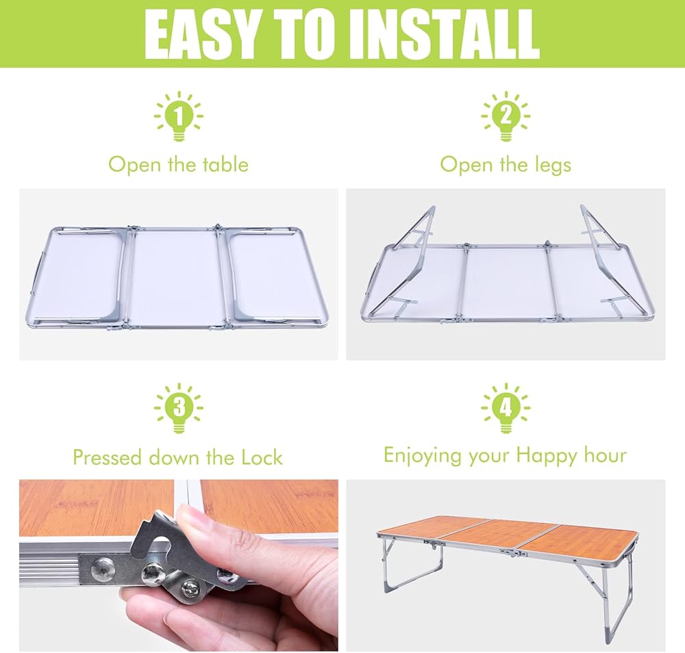 ثابتة ومتينة: طاولة نزهة محمولة بلمسة نهائية بدعم جانبي إضافي على شكل حرف U ومزلاج آمن، تضمن أن طاولة التخييم المصنوعة من الألومنيوم مستقرة بما يكفي في الاستخدام.