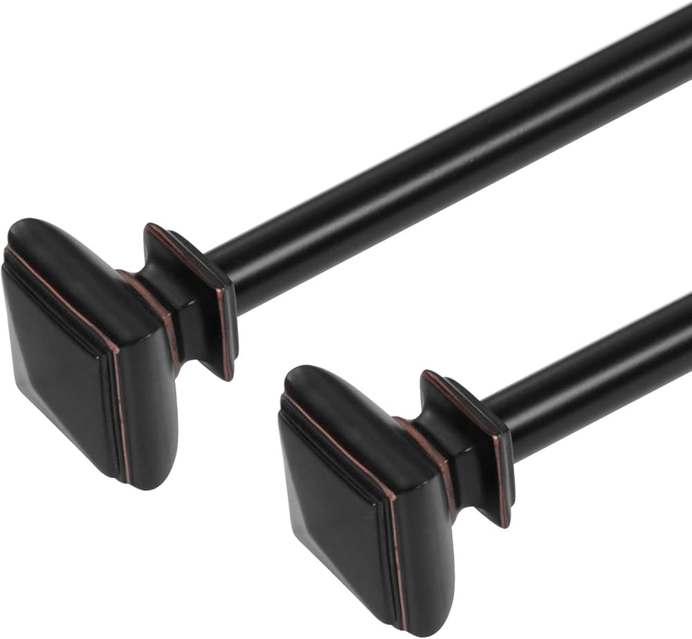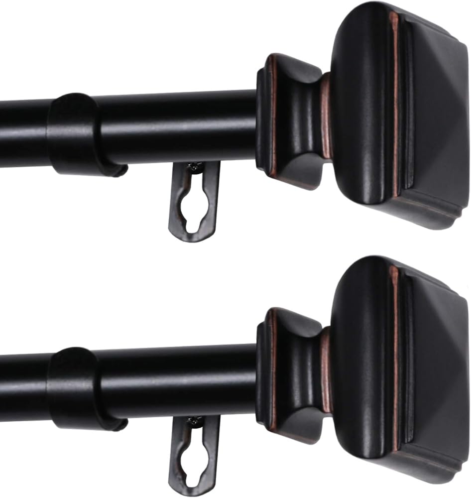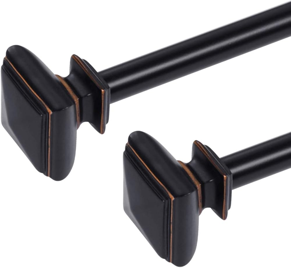 الفيروز 2 حزمة قضبان ستارة النافذة لنظام التشغيل Windows 28 إلى 48 بوصة ديكور قابل للتعديل 3/4 بوصة قطر نافذة واحدة قضبان الستارة مجموعتين، تيجان كلاسيكية مربعة غربية، نيكل