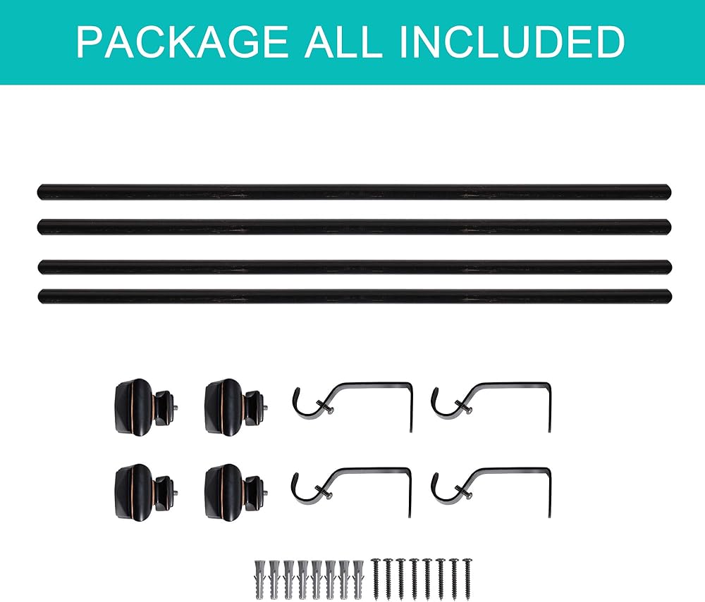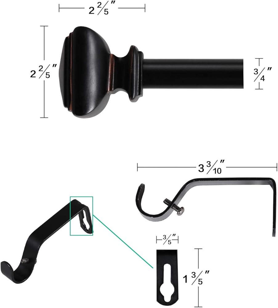 المادة: مصنوعة من معدن/فولاذ متين على القضبان وإكسسوارات الأجهزة، ونهايات من الراتنج. يدوم طويلاً وقوي بما يكفي ليتحمل الستائر الثقيلة التي يصل وزنها إلى 15 رطلاً