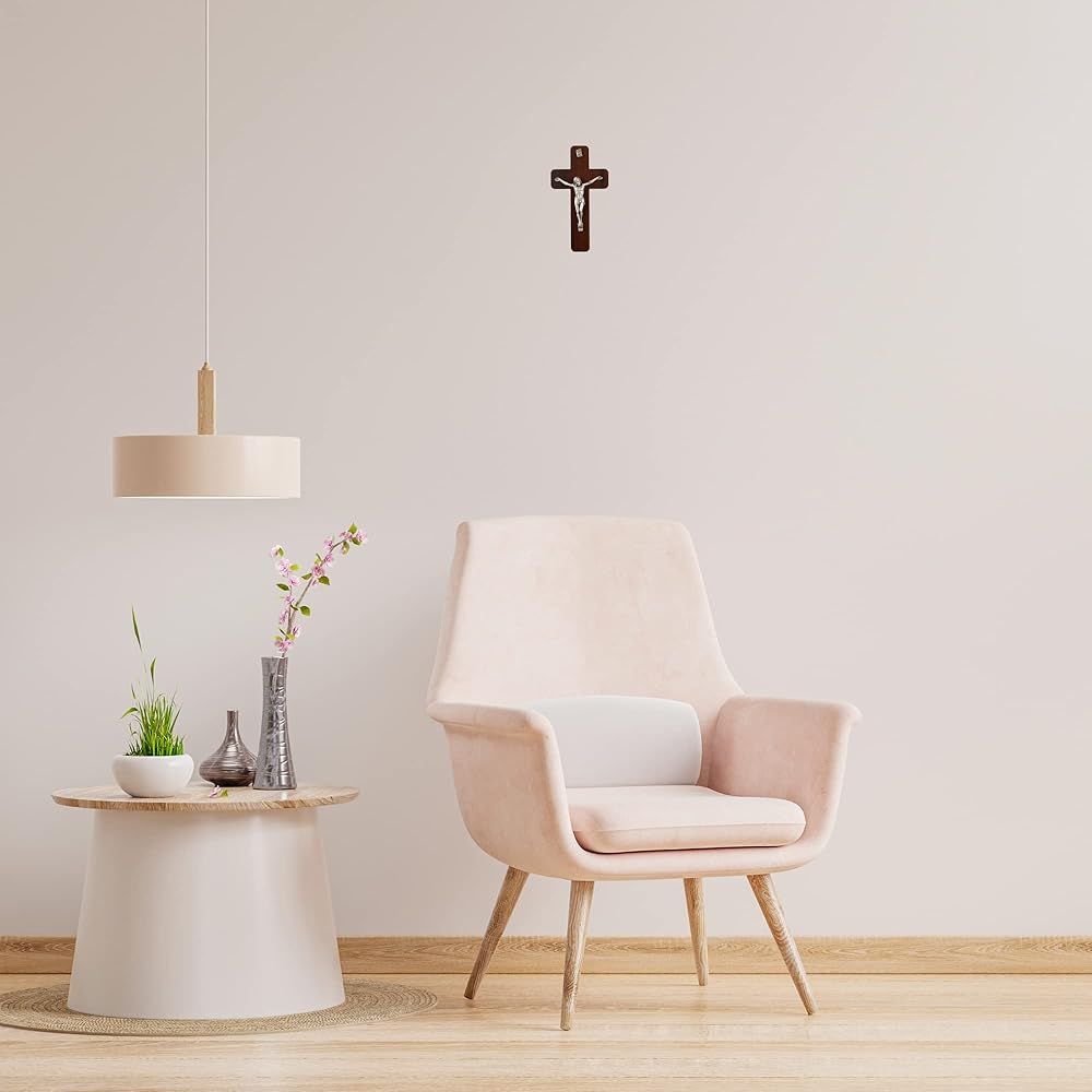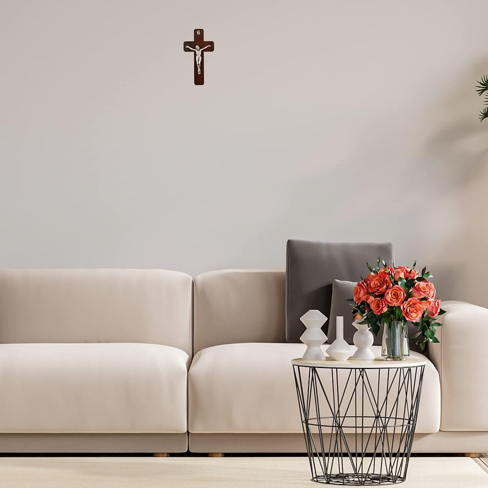 إضافة جميلة للمنزل الكاثوليكي - أضف صلبًا خشبيًا جميلًا إلى منزلك! البقعة الداكنة على الصليب وقطعة يسوع المركزية ذات اللون الفضي تجعلها مثالية للتعليق على أي باب.