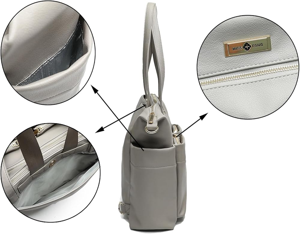 • 【أنيقة وعملية】حقيبة الحفاضات Miss Fong هي مزيج من الموضة والوظيفة. حقيبة ظهر للحفاضات هذه مصنوعة من جلد البولي يوريثان الصديق للبيئة، مبطنة بالنايلون المقاوم للماء بنسبة 100%، مما يجعل من السهل تنظيف الجزء الخارجي والداخلي من حقيبة الحفاضات باستخدام قطعة مبللة. المنشفة. أحزمة الكتف وحقيبة الظهر المبطنة بجلد البولي يوريثان تقلل من التعب وتوفر حملاً مريحًا. وسادة تغيير الحفاضات - نايلون مقاوم للماء بنسبة 100%. سحاب وشارة العلامة التجارية - ذهب عيار 18 قيراط. جهاز تدفئة الزجاجات: مادة عازلة للحرارة للحفاظ على مشروبك/طعامك في درجة الحرارة المناسبة.