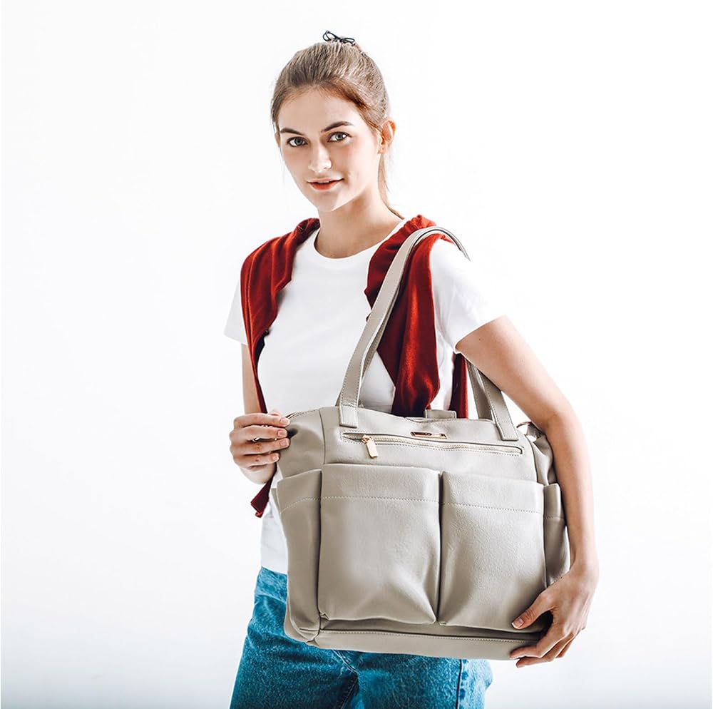 • 【تصميم 14 جيبًا لحقيبة الحفاضات】تم تصميم الجزء الداخلي والخارجي بجيوب متعددة بوظائف مختلفة لتخزين العناصر المختلفة. 6 جيوب خارجية - جيب خلفي واحد لتخزين جهازك اللوحي؛ 1 جيب أمامي كبير بسحاب للمحفظة والمناديل المبللة؛ 2 جيب جانبي معزول يمكن أن يناسب زجاجات طفلك وزجاجاتك بأحجام مختلفة. 8 جيوب داخلية - 3 جيوب مفتوحة، 3 جيوب بسحاب، 2 جيوب معزولة. واسعة بما يكفي لحمل معظم مستلزمات الطفل الأساسية ولا تزال منظمة بشكل مثالي. حقائب أطفال متعددة الوظائف للأم والأب.