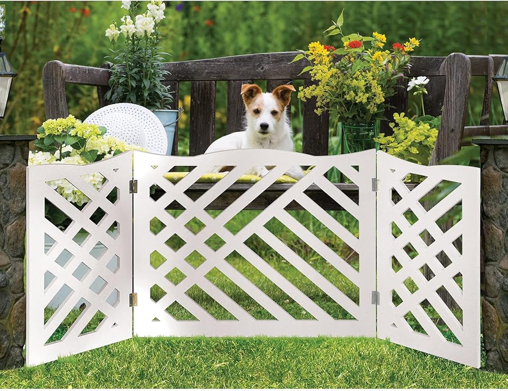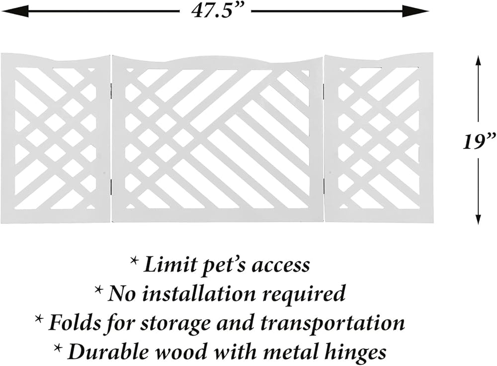بوابة خشبية للحيوانات الأليفة - مثالية لحجب الممرات والجزء العلوي أو السفلي من السلالم ومداخل غرفة النوم وغرف الطعام والمداخل الأخرى، تتيح لك بوابة الحيوانات الأليفة الخشبية هذه حجب أي غرفة في المنزل - للحفاظ على كلبك أو قطتك في الداخل أو الخارج - بأناقة! يبلغ مقاس البوابة القائمة بذاتها 47 1/4 انش عرضًا × 19 انش طولاً عند فتحها.