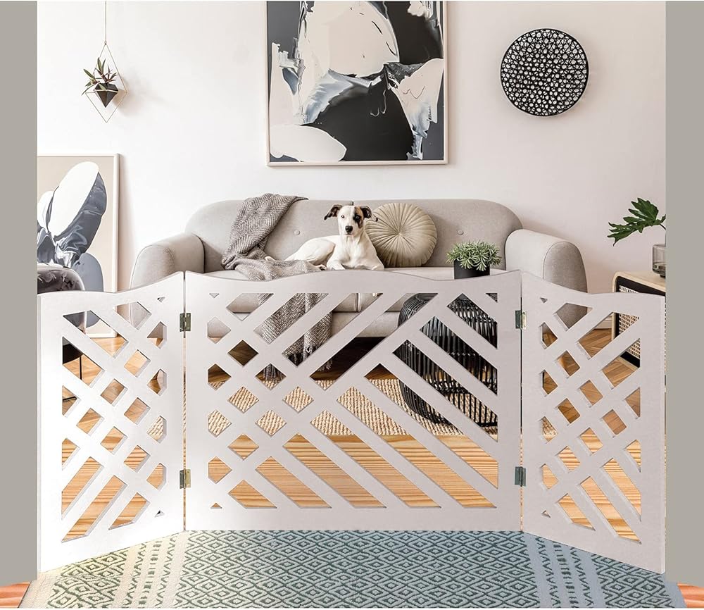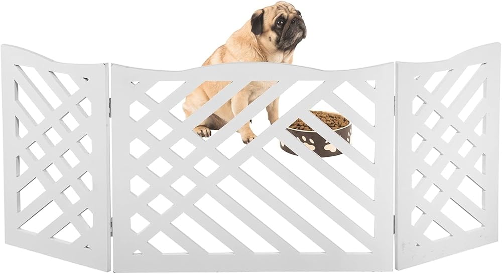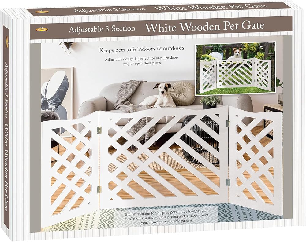هدية مفيدة - سياج خشبي للحيوانات الأليفة يمثل هدية مدروسة للانتقال إلى منزل جديد أو "حيوان أليف جديد" لأي والد حيوان أليف أنيق. مصنوعة من خشب ليفي متوسط الكثافة المتين مع مفصلات معدنية. يرجى ملاحظة: يجب طي جوانب اللوحة قليلاً حتى تقف البوابة.