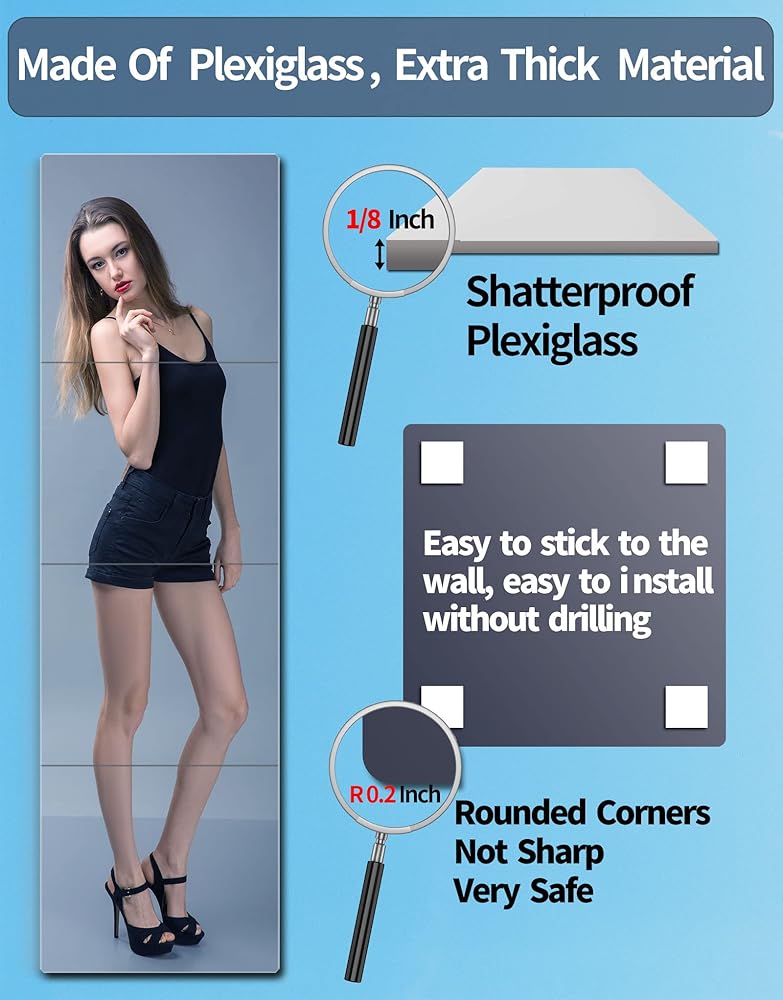 (المشاهد القابلة للتطبيق): يمكن استخدام المرآة كمرايا صالة الألعاب الرياضية في صالة الألعاب الرياضية المنزلية وغرفة النوم والخزانة والباب ومرآة حائط كبيرة لغرفة النوم ومرآة الجسم والمرايا المثبتة على الحائط ومرآة طويلة ومرآة طويلة ومرآة للتمرين