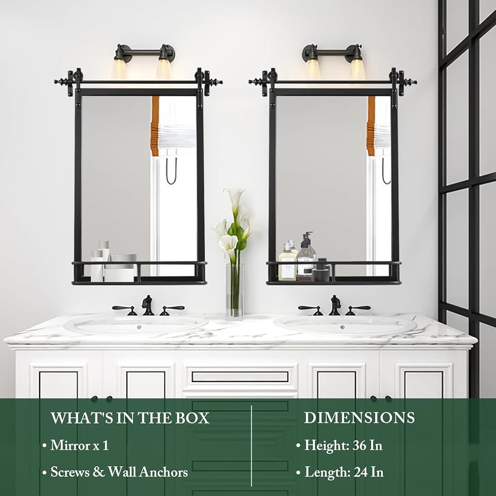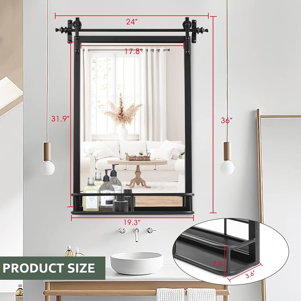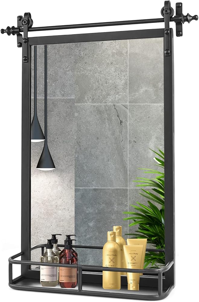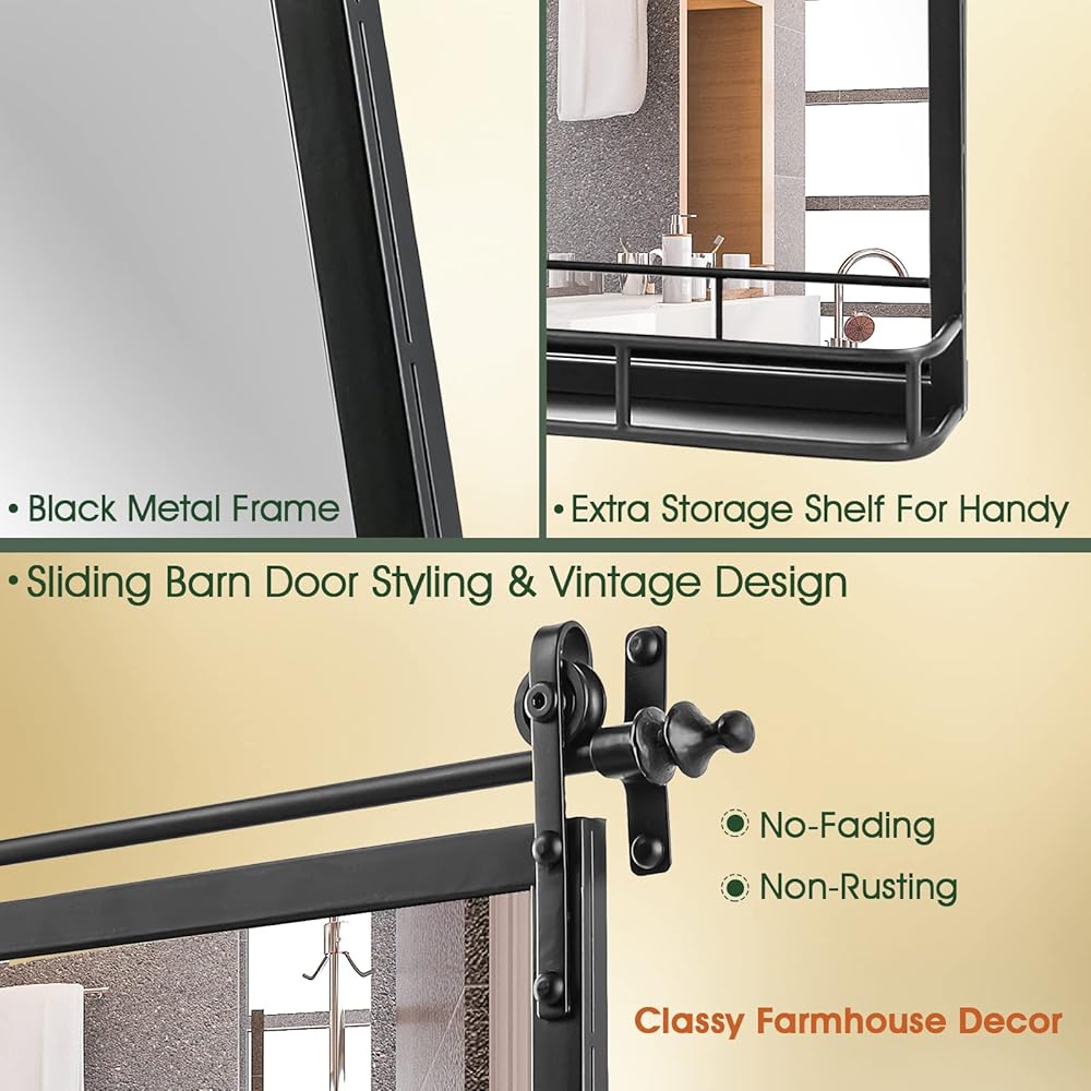 مرآة باب الحظيرة للمزرعة، مرآة حائط ريفية بإطار معدني مقاس 25 بوصة × 30 بوصة، مرآة زينة للحمام مستطيلة باللون الأسود لمدخل غرفة المعيشة وغرفة النوم