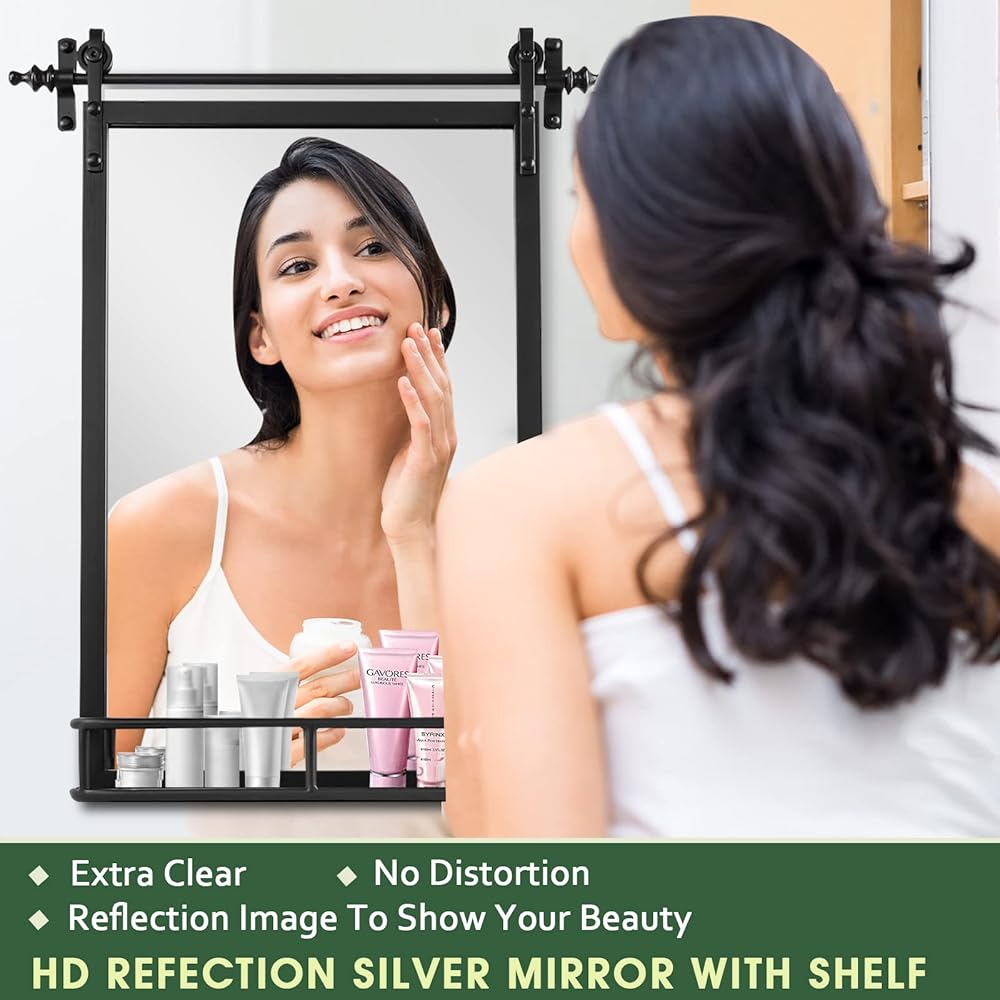 • رف عملي لاستخدام أفضل: المجموعة الذكية من مرآة الحمام الجدارية والرف المدمج ستمنحك تجربة مستخدم أفضل. يساعدك الرف الوظيفي في الحفاظ على جميع مستحضرات التجميل وأدوات النظافة منظمة وفي متناول اليد. بالإضافة إلى ذلك، فهو يدعم ما يصل إلى 22 رطلاً، وهو قوي بما يكفي لحملها جميعًا.
