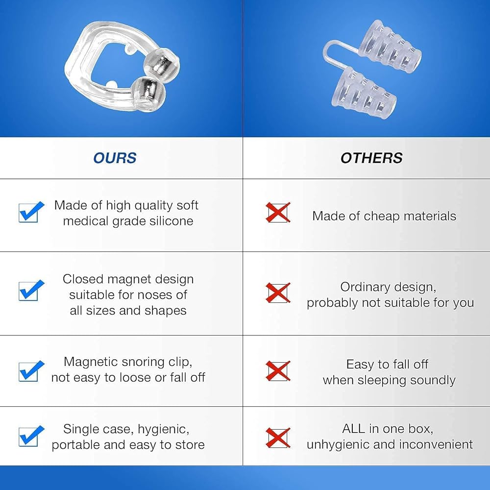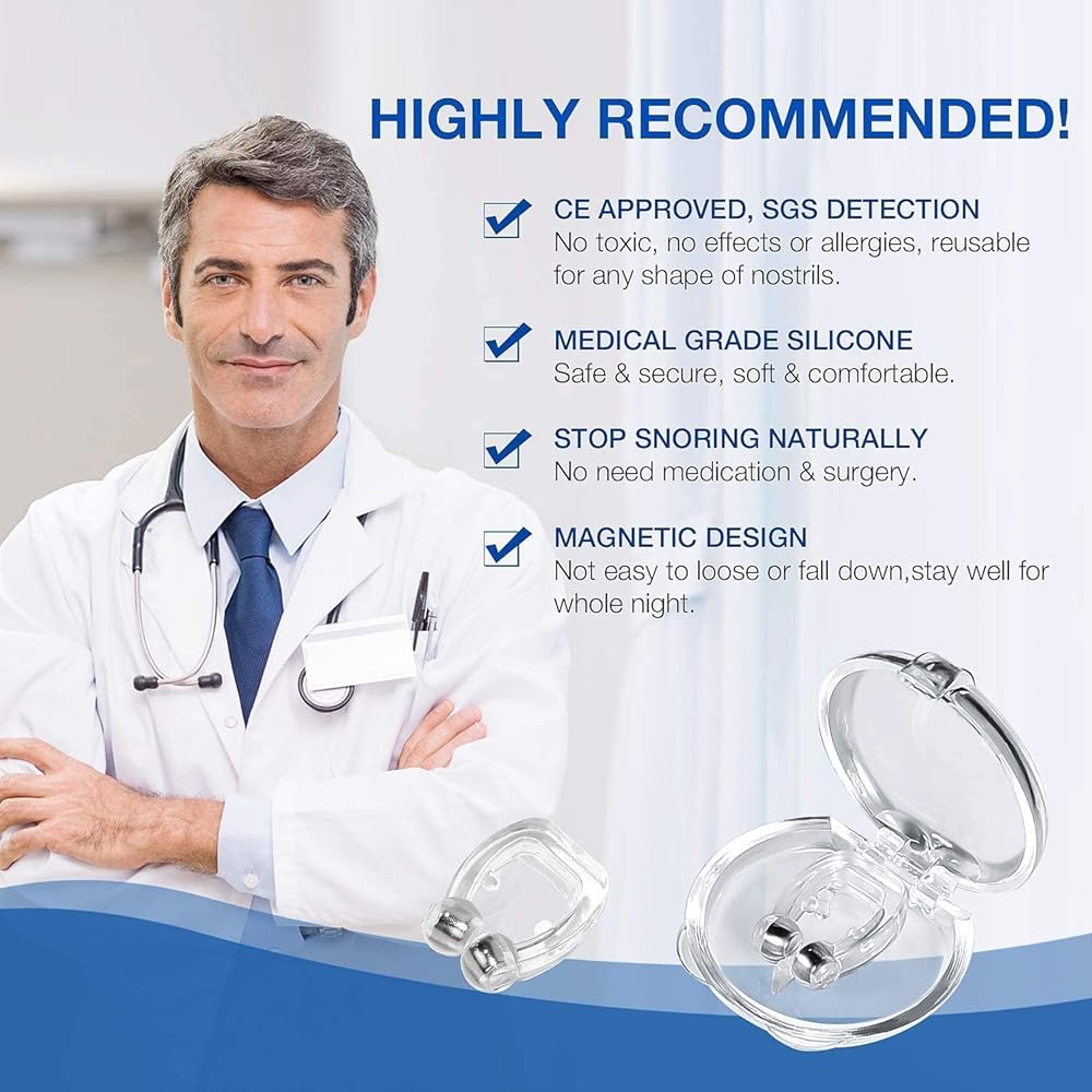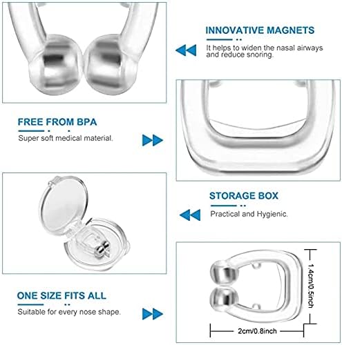 😴MULTI-FUNCTIONAL - This Silicone Magnetic Anti Snore Clip not only prevents the usual snoring, change the habit of oral respiration during sleeping, it can improve your breathing when you have a congested nose, such as when sick. This can make your breathing softer. In addition, you can use the nose clips when exercising, such as jogging and hiking, to breathe better and more effectively.