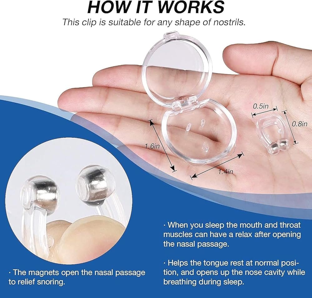 😴ANTI SNORING SOLUTION - The newest magnetic nose clip is the solution for all snorers! The clip has been scientifically designed, it can not only reduce snoring, but also promote the circulation of air in the nose and increasing the flowing of air Relieve the burden and pressure of respiratory system.