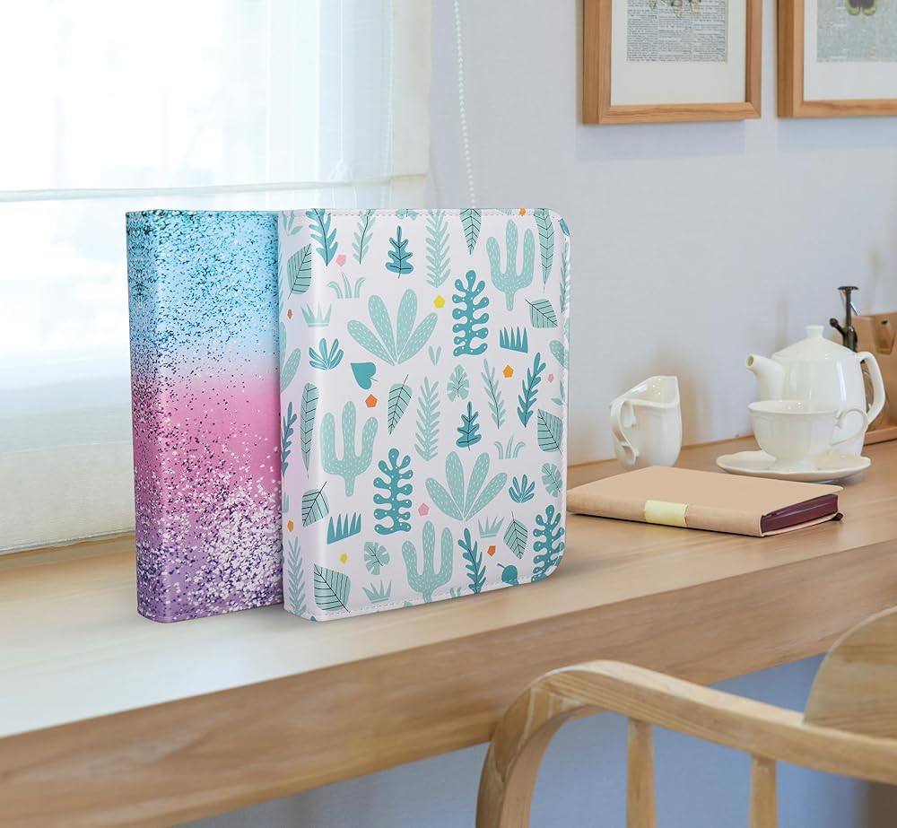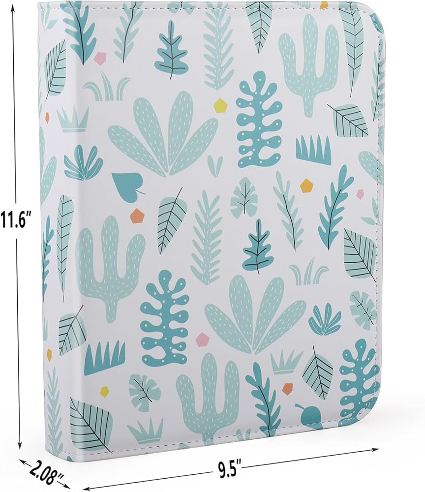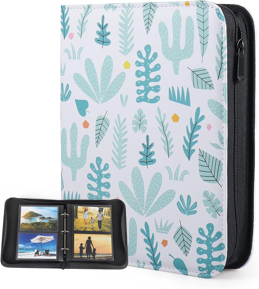 فيلام البوم صور بـ3 حلقات مع سحاب اغلاق للصور الافقية مقاس 4 × 6، غطاء ناعم بنمط صبار كرتوني، سعة 200