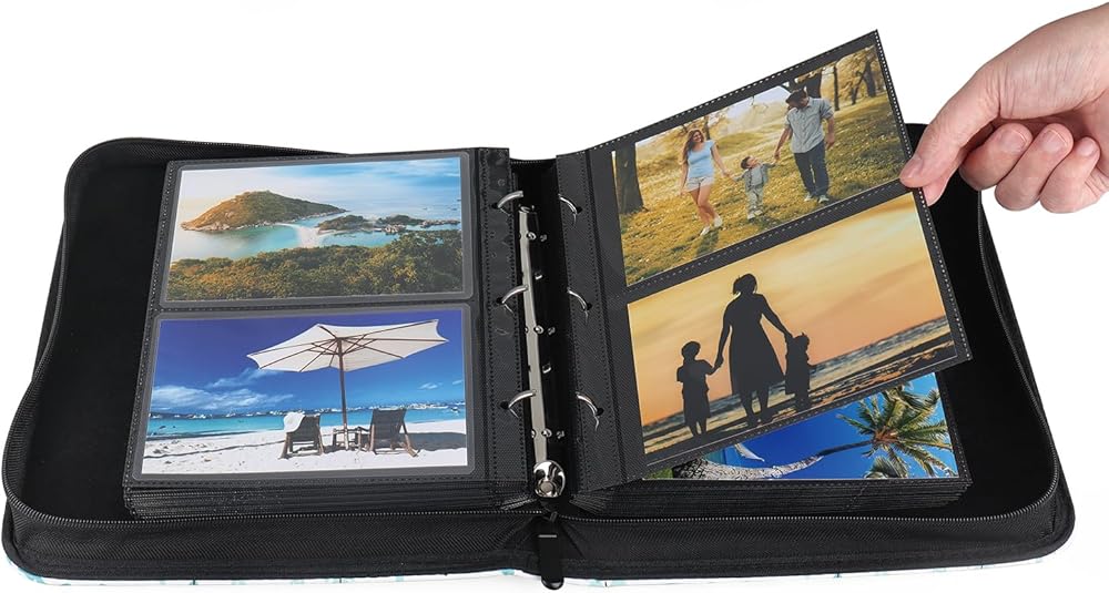 ألبوم صور بسعة 200 مع سحاب إغلاق وغطاء ناعم من البولي يوريثان