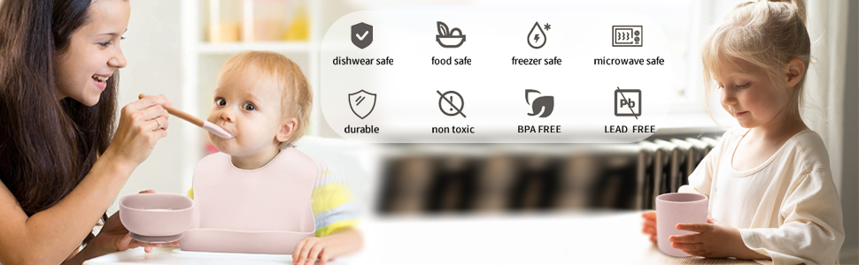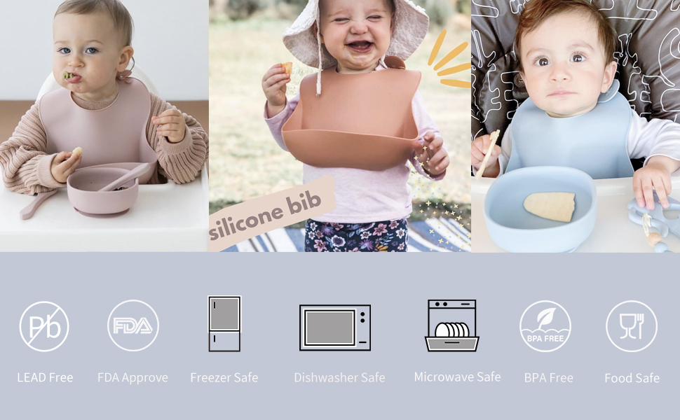 【السلامة أولاً 】 مجموعة تغذية الأطفال مصنوعة من مادة السيليكون عالية الجودة بنسبة 100%. لقد تم اختباره بدقة من خلال معايير CPSIA وCSPA المعتمدة، وشهادة CPC (شهادة منتج الأطفال). سلامة طفلك وراحة بال أمك تعني أكثر بالنسبة لنا.