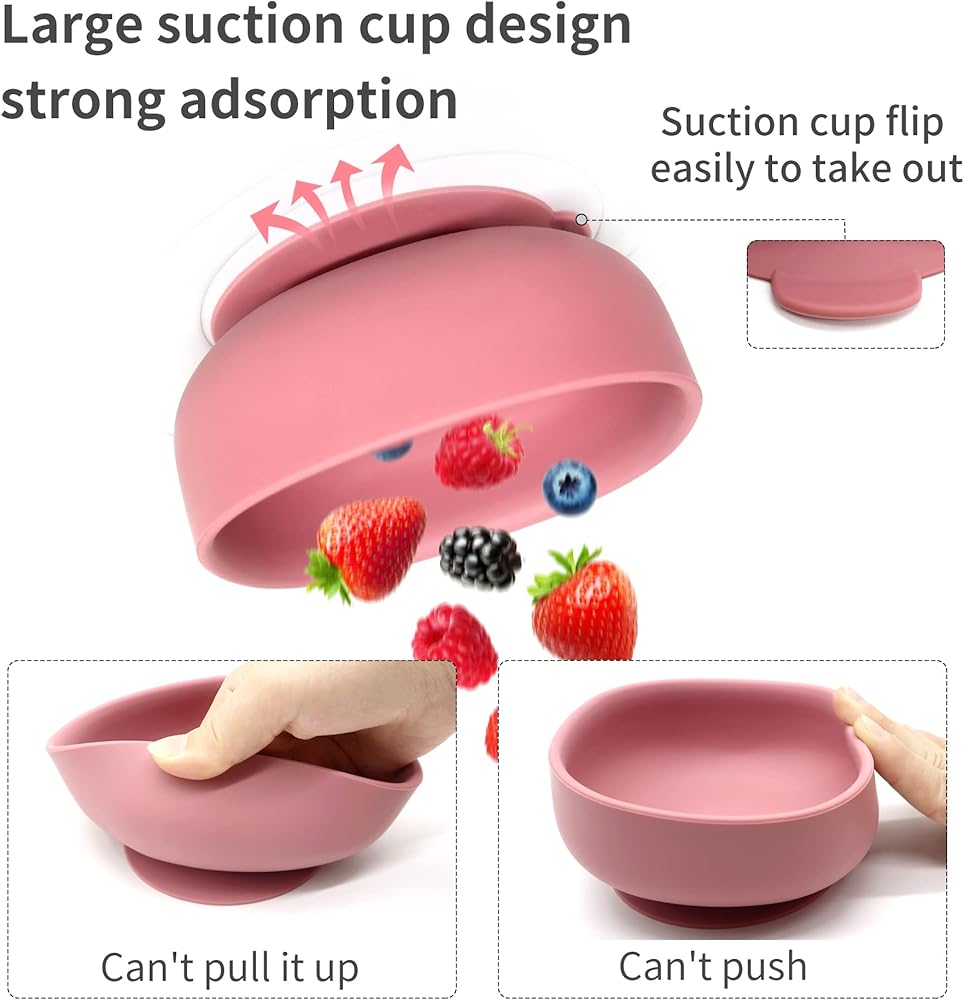 【أوعية الشفط】تبقى أوعية الأطفال المصنوعة من السيليكون على الكرسي العالي. ادفع الجزء السفلي المركزي من الوعاء للسماح للهواء بالخروج من كوب الشفط، بحيث يمكن امتصاص الوعاء جيدًا على الطاولة. رائعة لأخذها إلى المطاعم أو استخدامها أثناء التنقل! إنها هدية رائعة للأطفال الصغار.
