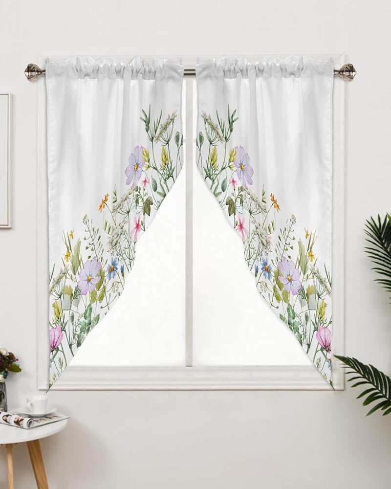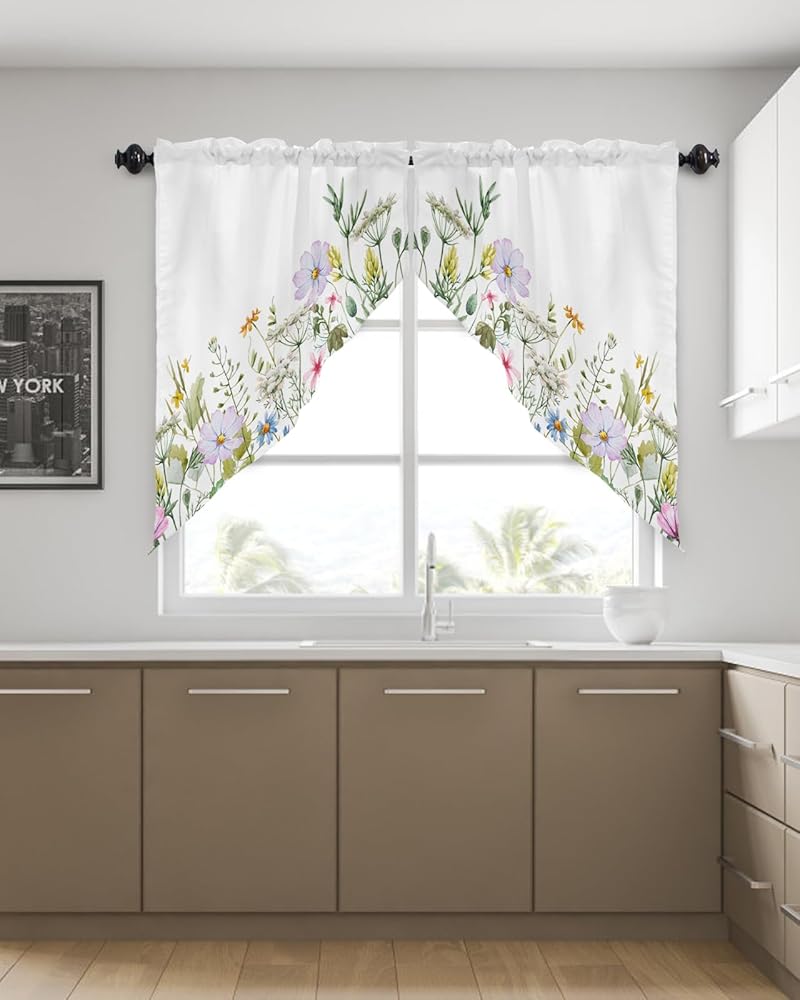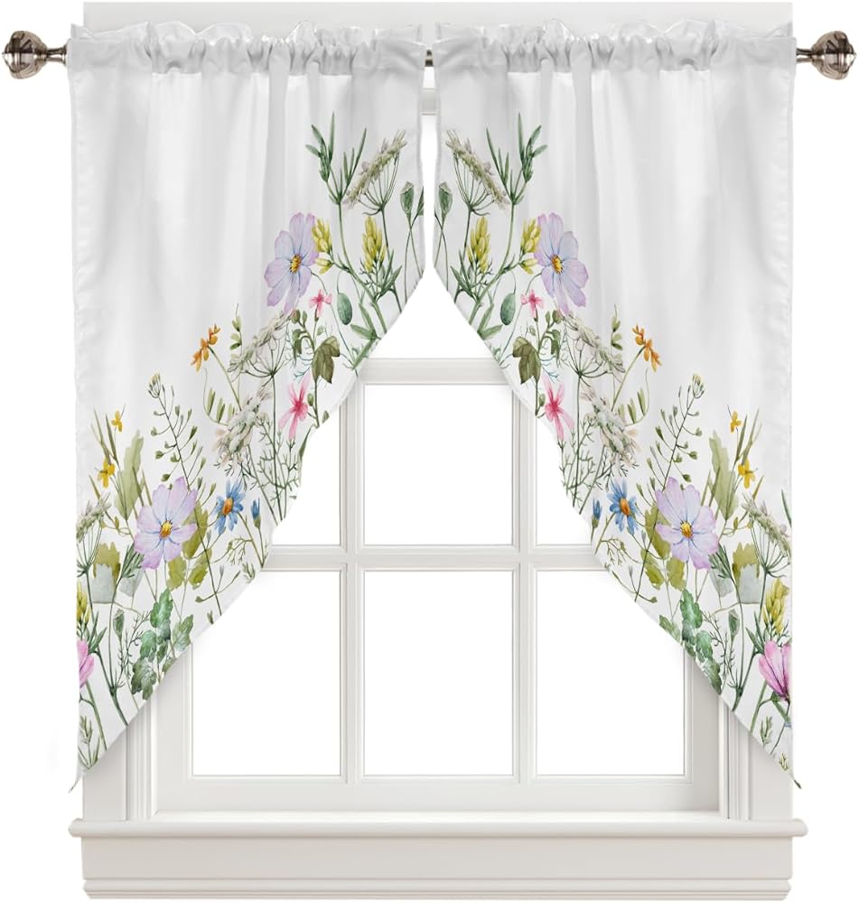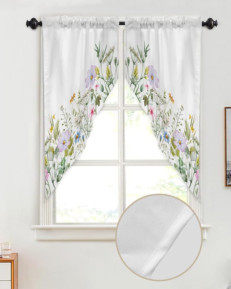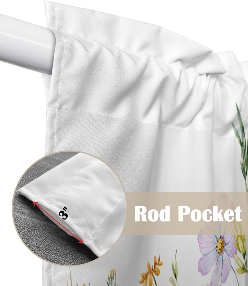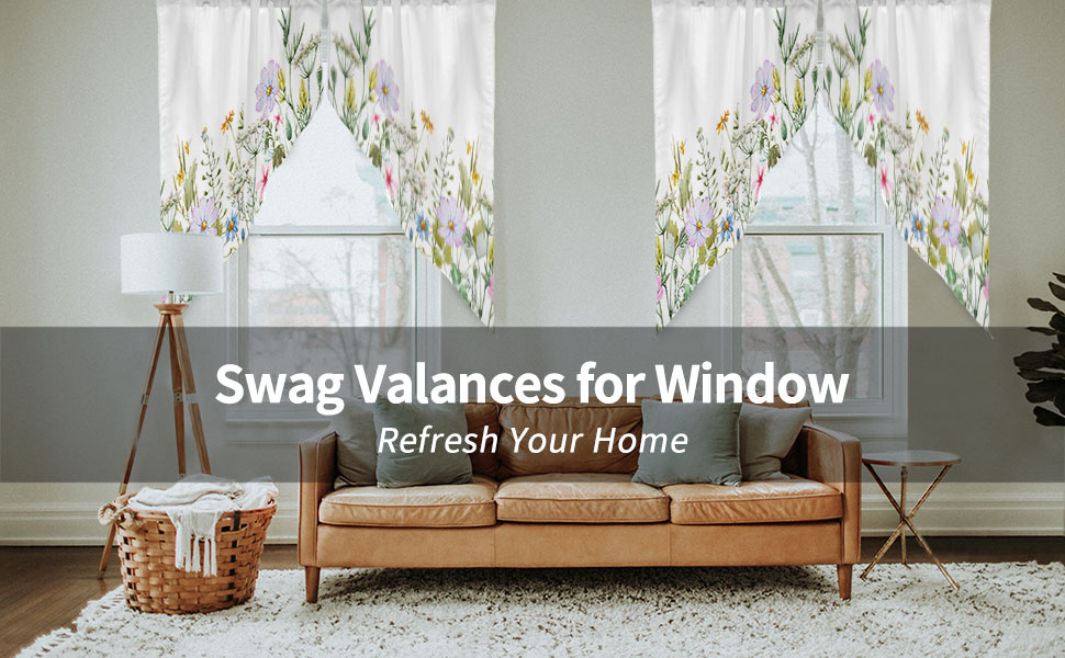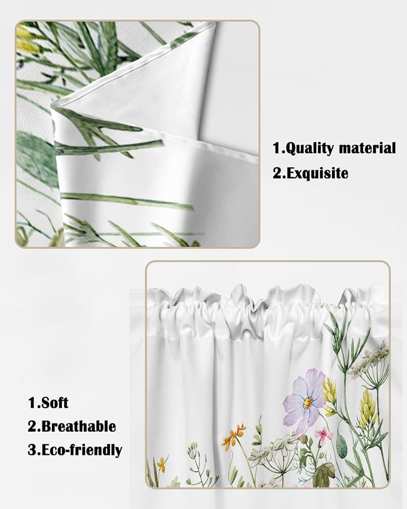ستائر Spring Swag Valance للنوافذ: مصنوعة من البوليستر عالي الجودة، ناعم وخفيف الوزن ولا يبهت ومسامي ومتين وخالي من التجاعيد. تتميز ستارة الزهور البرية هذه بخياطة وقطع رائعة، فهي مصنوعة جيدًا وسميكة بما يكفي لتكون متينة، ويمكن استخدامها لفترة طويلة.