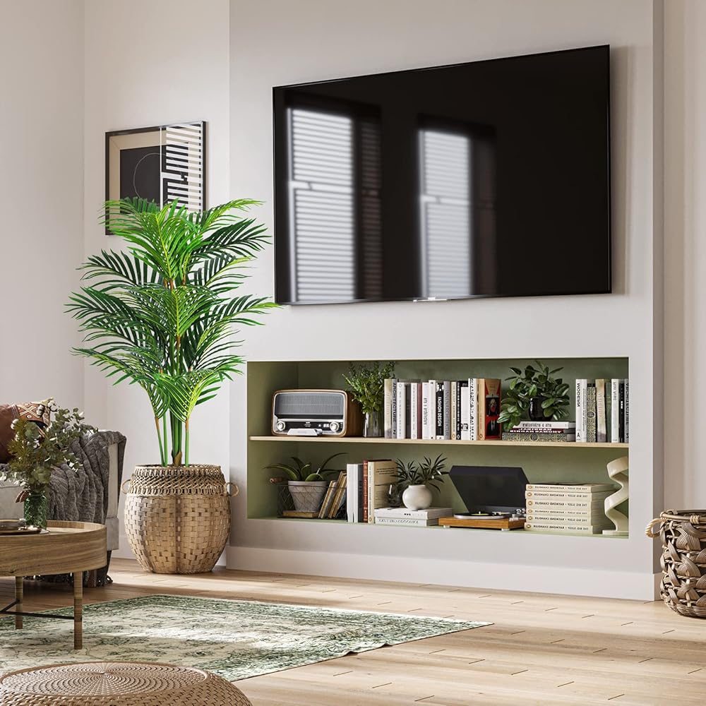 【طازجة دائمًا】معبأة بكيس بلاستيكي ومشحونة في كرتون، لذلك قد تأتي شجرة نخيل الأريكا الصناعية مضغوطة. فقط قم بفك العبوة، وجهز الشجرة والطحالب المجففة. نباتاتنا الصناعية مزودة بأسلاك معدنية داخلية متينة، ويمكنك تعديل الأوراق والأغصان بالشكل الذي تفضله. سوف يحافظ على ارتفاعه ولونه وشكله لسنوات دون تقليم أو تشكيل. سيتم الحفاظ على اللمسة الخضراء الجمالية لسنوات.