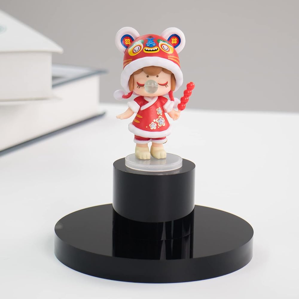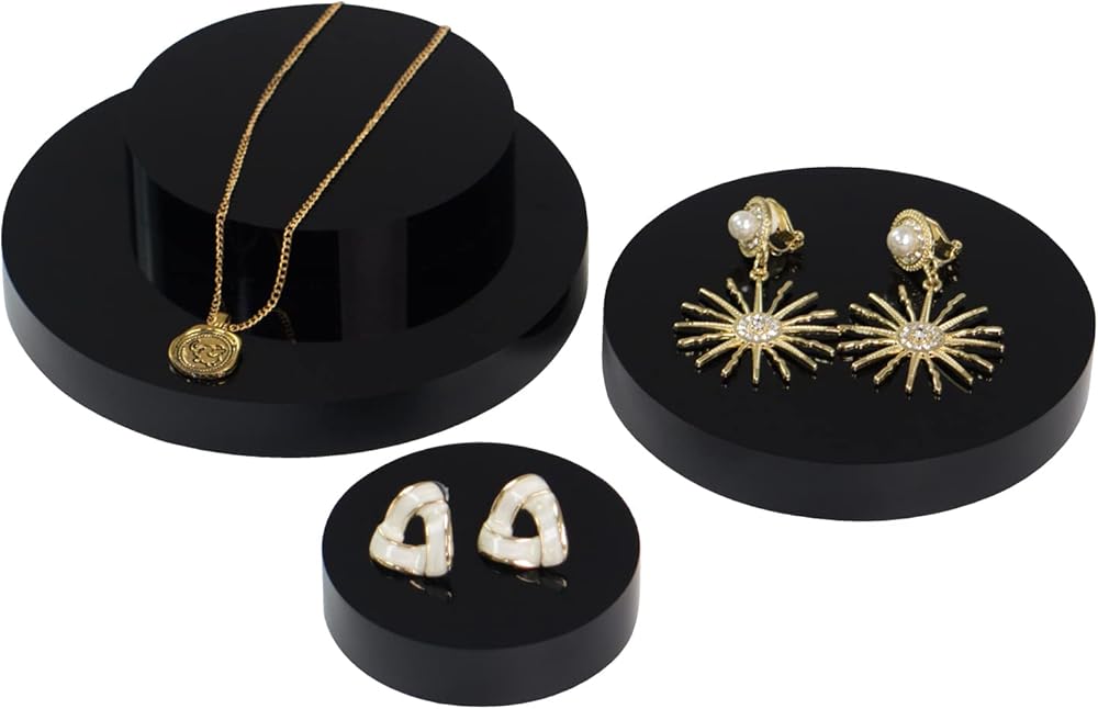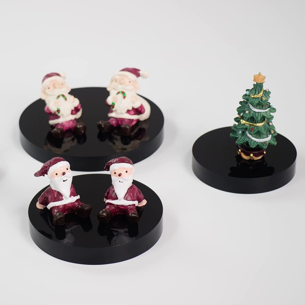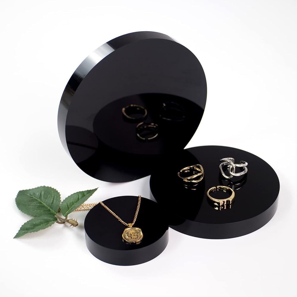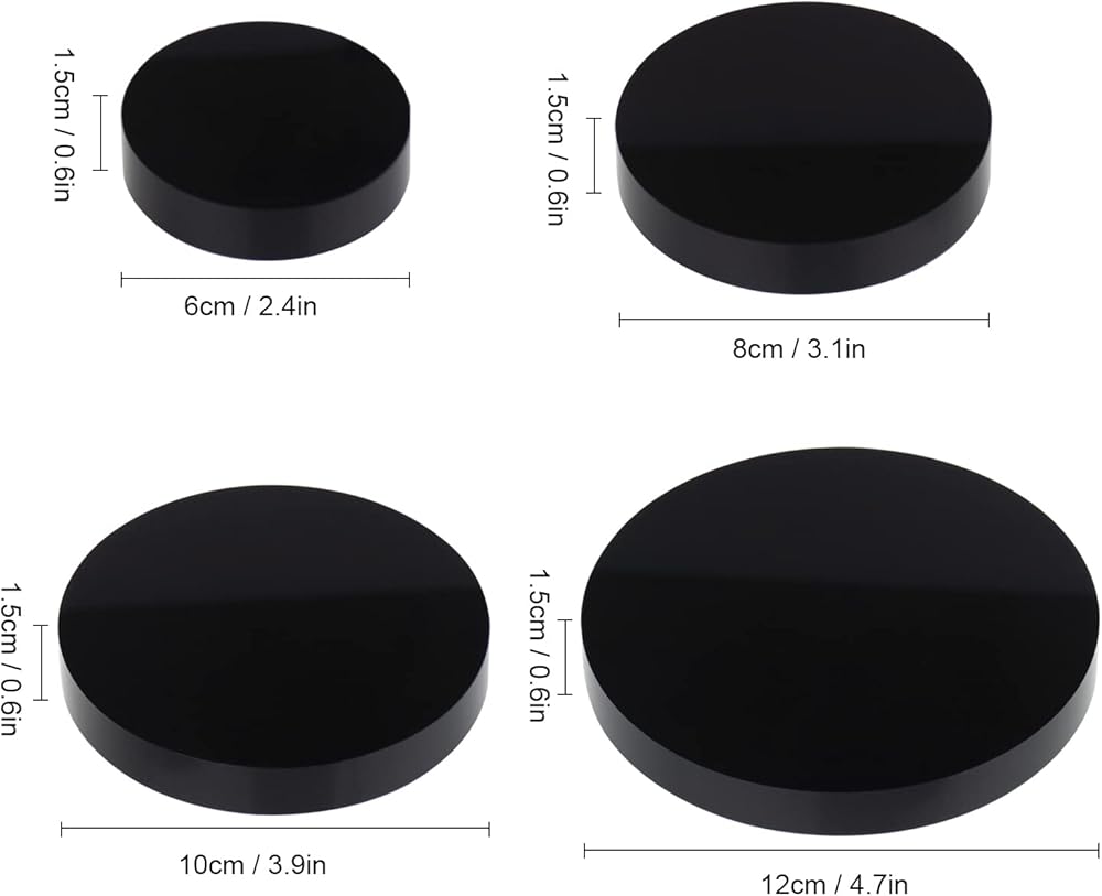 KCGANI 4 قطع من مكعبات الأكريليك المستديرة للعرض، حافة أكريليك سوداء مصقولة للعرض وقاعدة عرض وقاعدة عرض وقاعدة كأس أسطوانية للطاولة تظهر شخصيات مقتنيات مستحضرات التجميل والمجوهرات