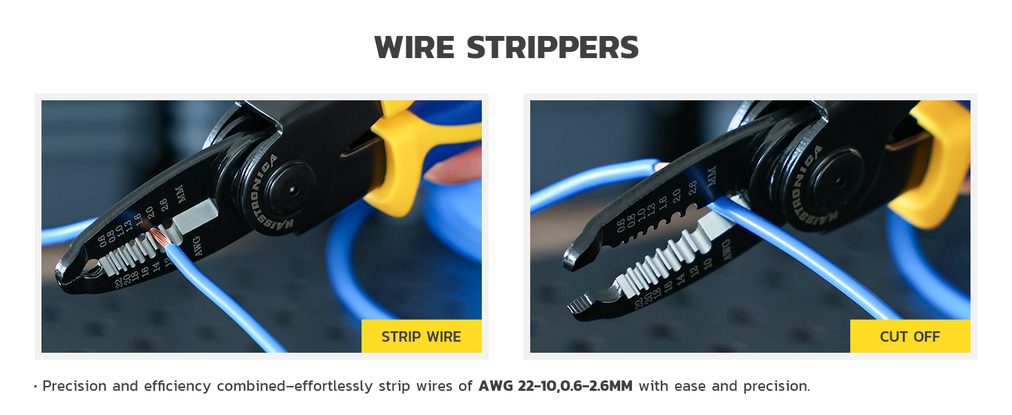 Cost-effective: We've combined the power of wire strippers, heavy-duty cable cutters, wire cutters, crimping pliers, and electrician's shears into one sleek and efficient tool set.