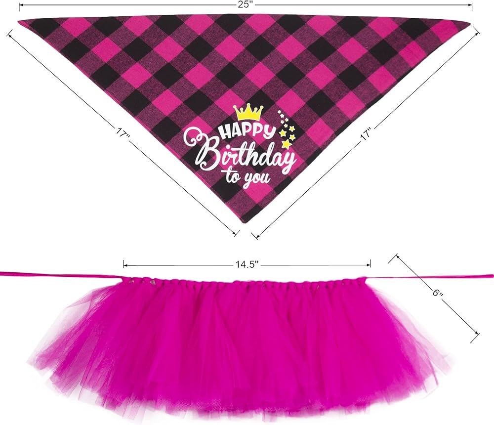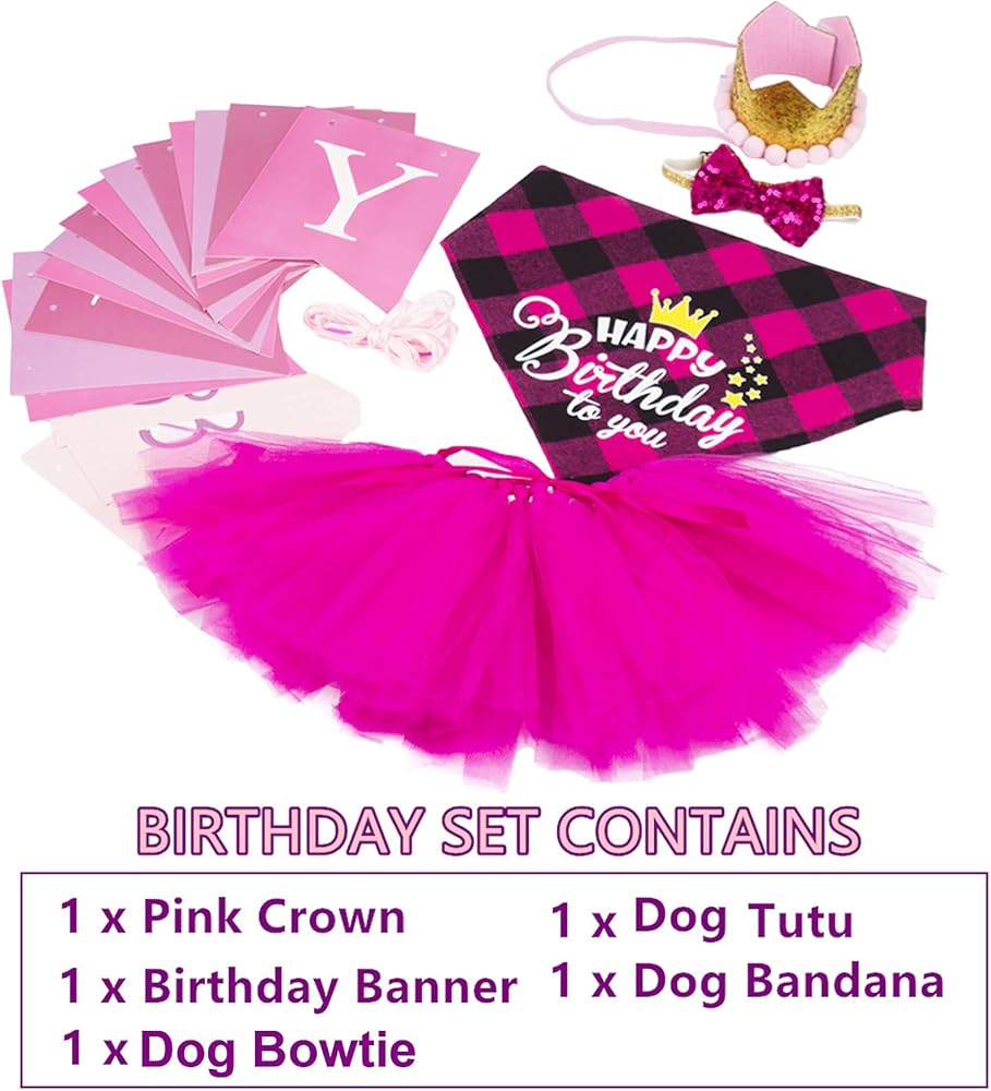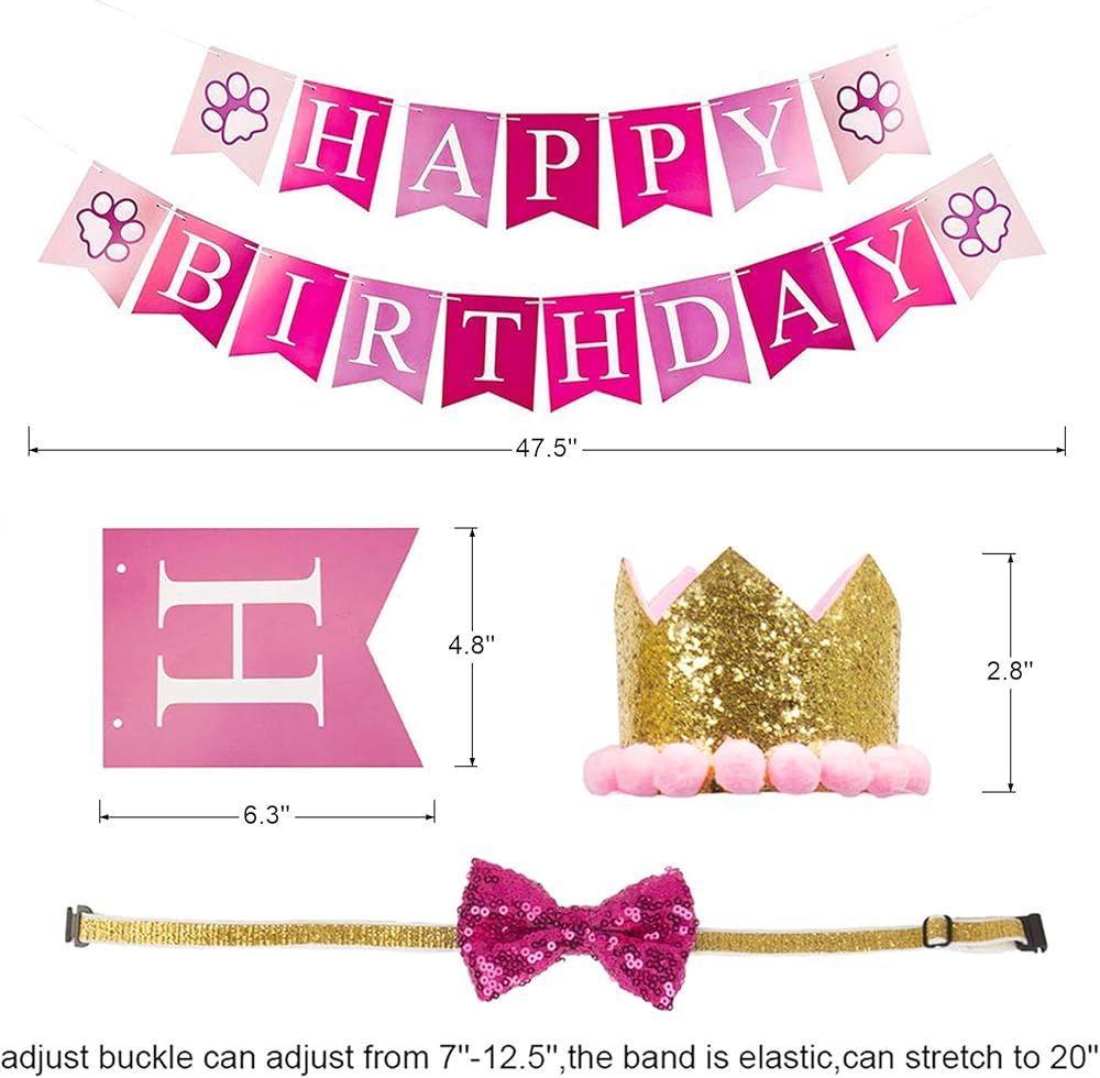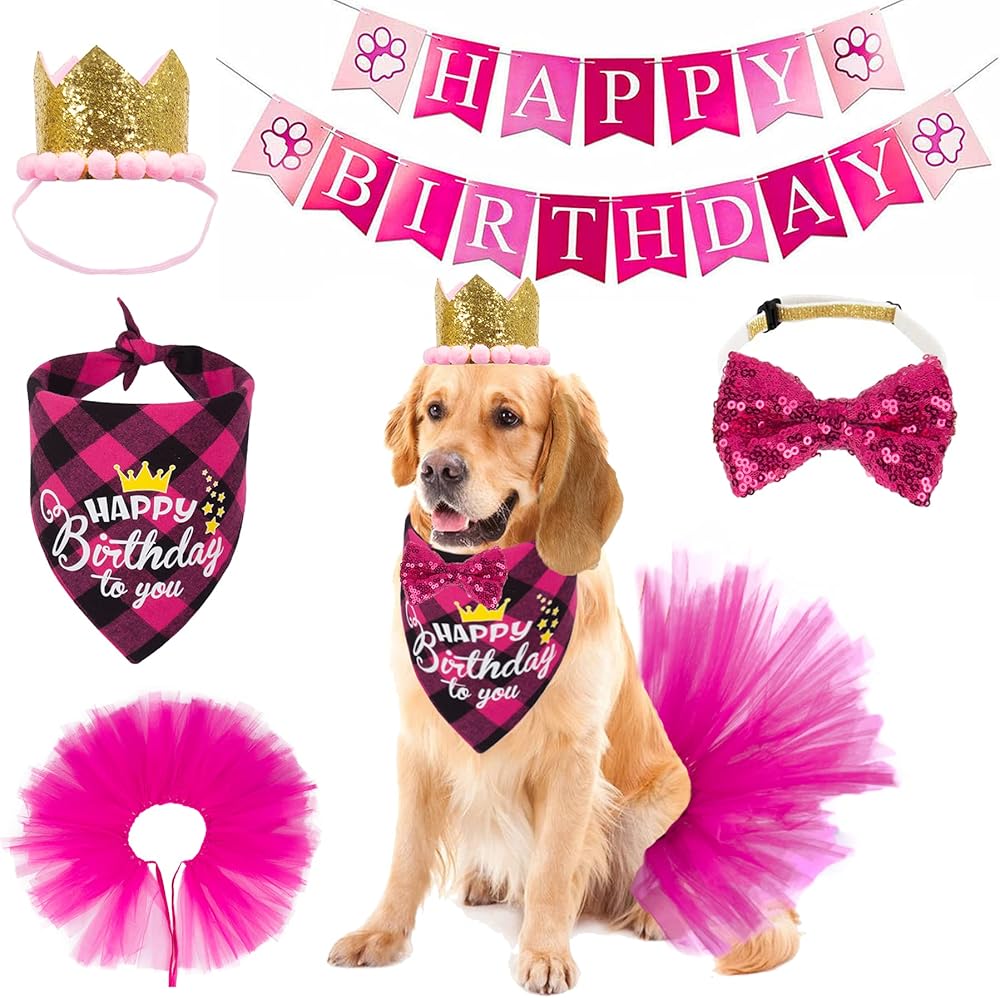لوازم حفلات أعياد ميلاد الكلاب: قبعة عيد ميلاد لطيفة للكلاب مع كرات بوم بوم وباندانا بعبارة "Happy Birthday to you" وربطة عنق لامعة للكلاب وتنورة توتو وردية اللون ولافتة "Happy Birthday"، كل ما تحتاجه لعيد ميلاد فتاتك هنا!