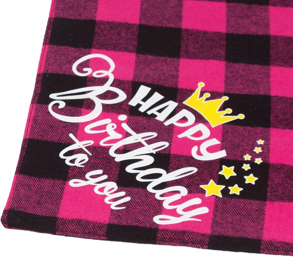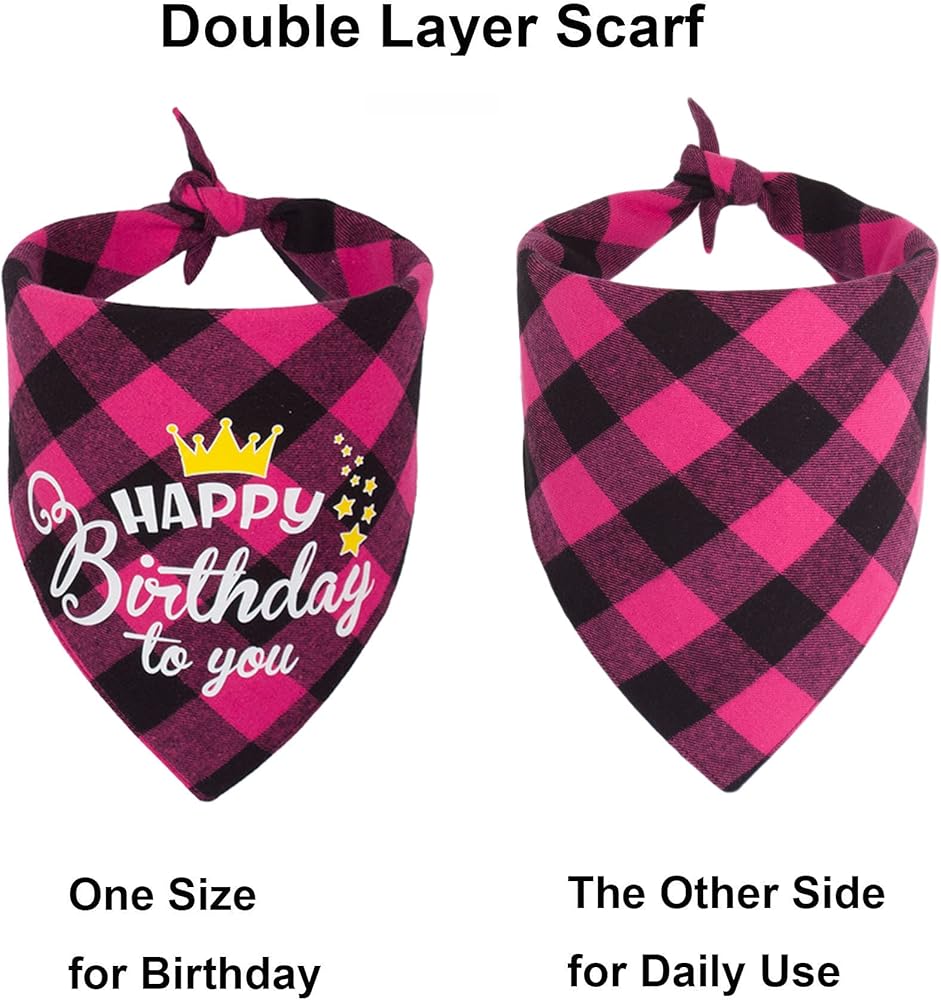 باندانا منقوشة لعيد ميلاد الكلاب: تصميم كلاسيكي منقوش، بأناقة ولا تنتهي موضتها أبدًا. الجانب الأمامي مطبوع بعبارة "happy birthday"، مثالي لحفلات أعياد الميلاد، الجانب الخلفي بدون طباعة، مناسب للاستخدام اليومي.