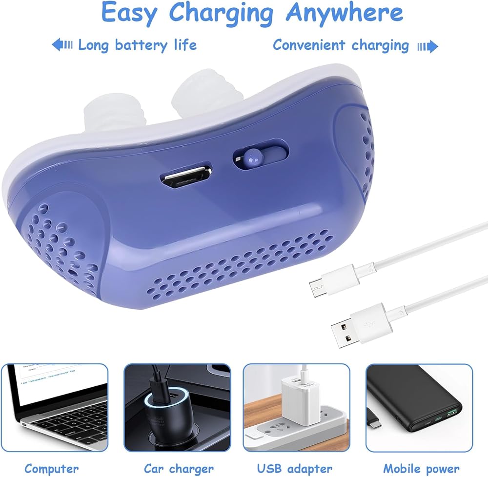⭐قابل لإعادة الشحن ومحمول: هذا الجهاز المضاد للشخير قابل لإعادة الشحن ويأتي مع كابل USB للشحن السريع.