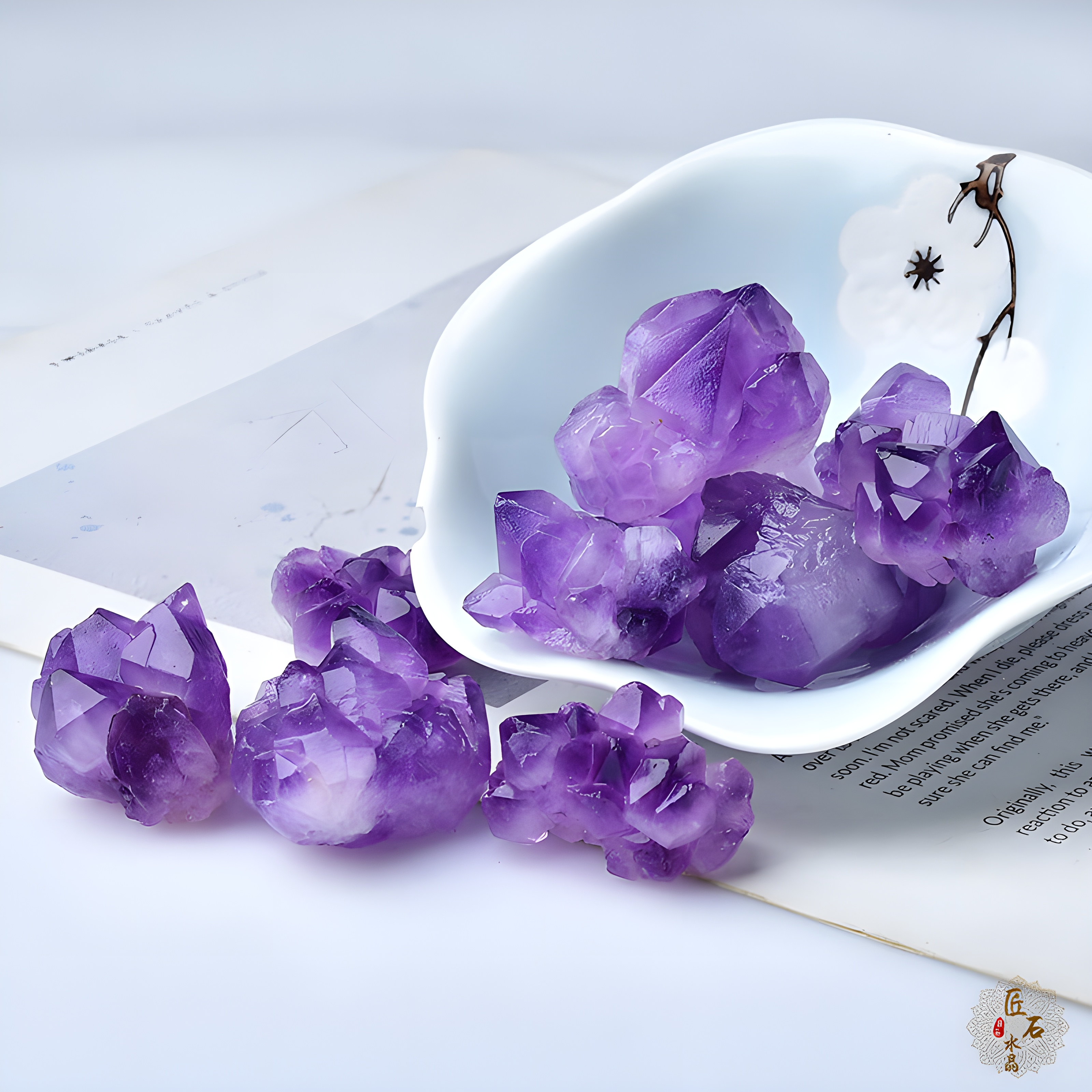 • Amethyst is a very beautiful healing crystals . This amethyst crystal is a very good diy material. let crystals join a meditation or yoga, it will bring a deep calm descended faster which can help our mind felt intent focused, and it will help us in a meditative blissful state in work life.
