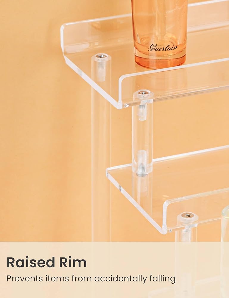 حافة مرتفعة آمنة: يحتوي الرف العلوي على واقيات لمنع دفع الأشياء من الخلف، بينما تحتوي الأرفف الأخرى بالأسفل على واقي أمامي وتستخدم الرفوف الأخرى كنقطة توقف خلفية. مثالية للمواد الهشة مثل العطور والعناية بالبشرة.