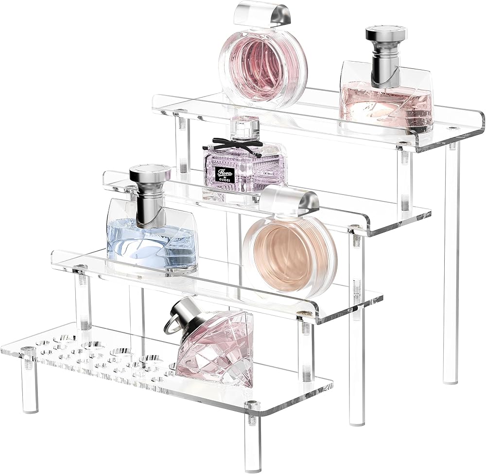 مادة أكريليك متينة: منظم حامل العطور مصنوع من لوح أكريليك بسمك 4 مم وأقدام أسطوانية كبيرة القطر، مما يجعله ثابتًا ومتينًا. يضمن التصميم فائق الوضوح تألق مجموعتك، مما يجعلها إضافة جميلة لأي ديكور.