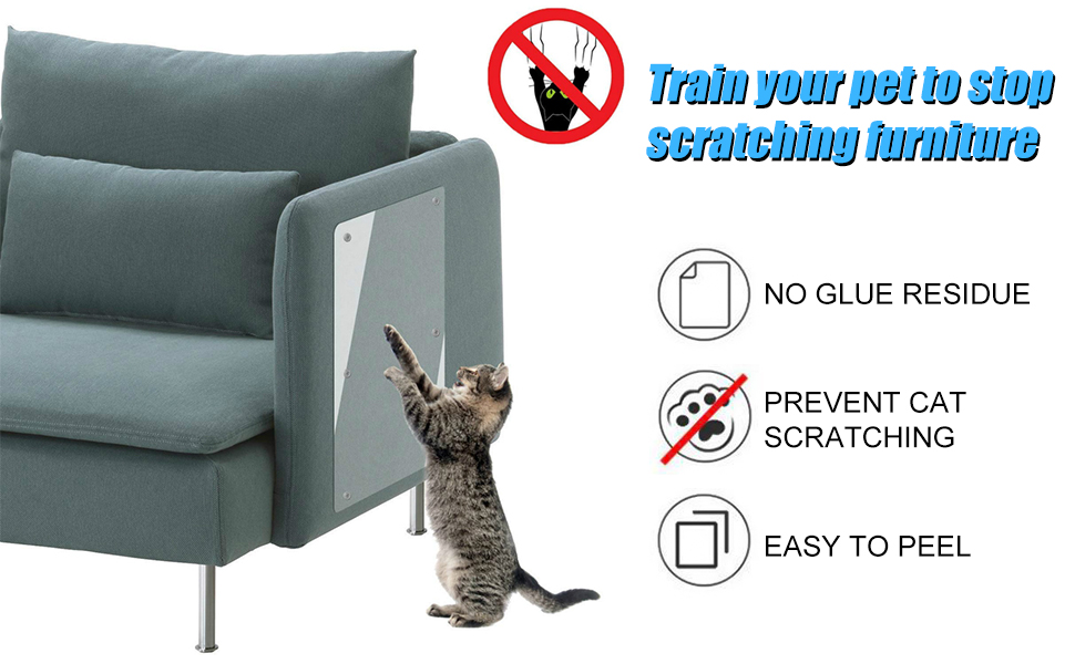• 【Effective Furniture Protection】 Using our cat anti-scratch furniture protectors stick on your furniture or doors to protect your fabric upholstery from damage caused by your pet's claws. Note: We do not recommend using this cat scratching protector on velvet, faux or real leather.