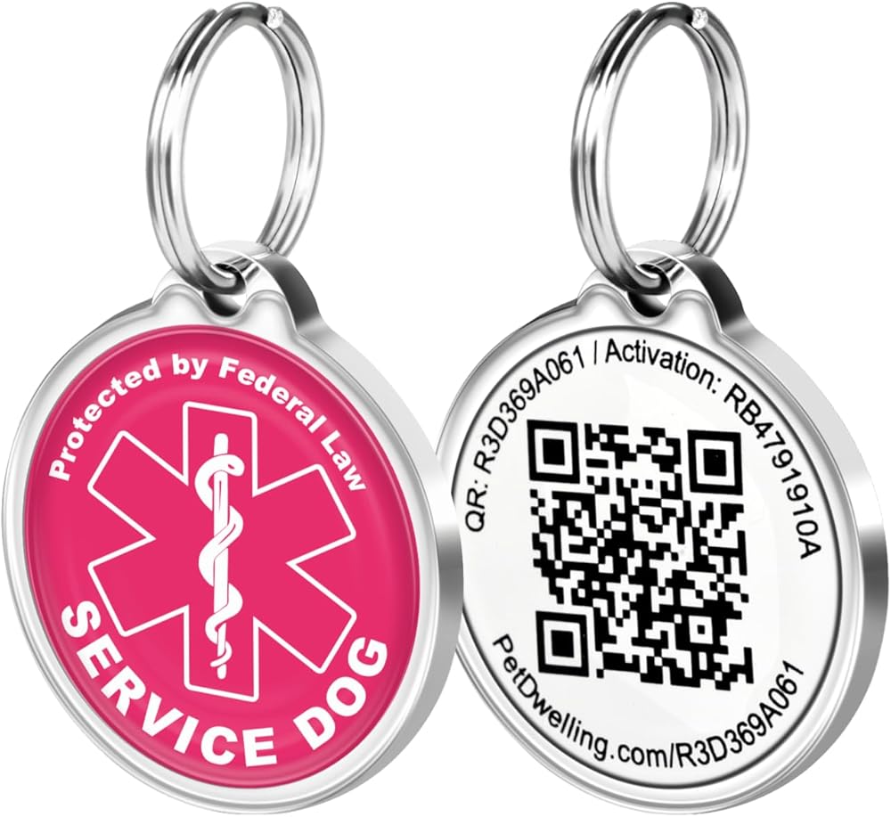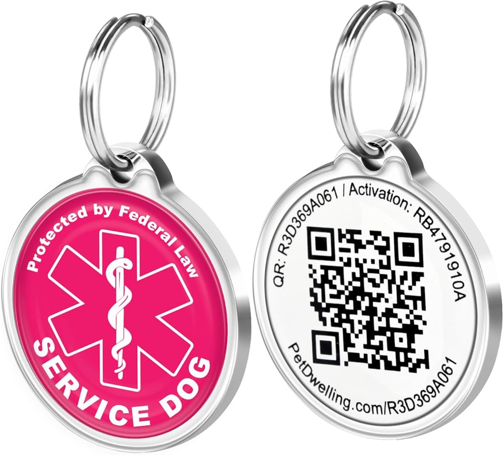 يتم عرض رمز التنبيه الطبي على العلامة ويتم وضع علامة عليه في ملف تعريف الحيوان الأليف عبر الإنترنت للإشارة إلى أن الكلب هو حيوان خدمة