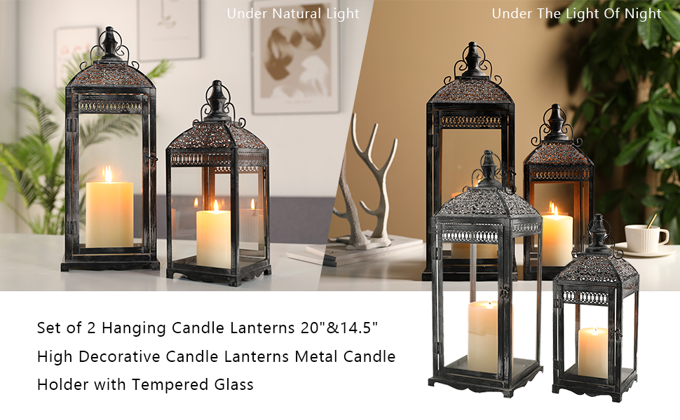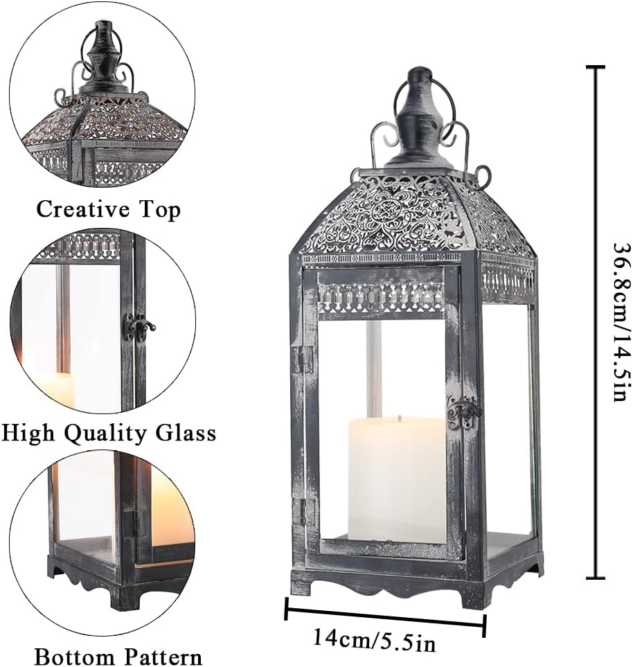 • 【حجم عالمي لمعظم المناسبات 】-حجم عالمي لمعظم المناسبات-يستخدم ضوء الشاي، والشموع الحقيقية، والشموع النذرية أو الصغيرة حتى 3 × 4 بوصة و4 × 6 بوصة. 5.5 بوصة × 5.5 بوصة × 14.5 بوصة طولًا و7.5 بوصة × 7.5 بوصة × 20 بوصة ارتفاعًا. الحديد والزجاج، لا يتم تضمين الشموع.