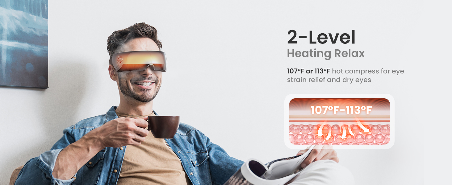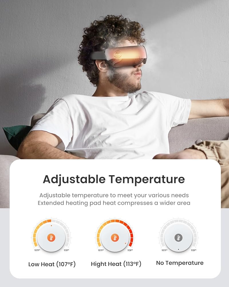 مستويان للحرارة والضغط للصداع النصفي - استخدمي مدلك العين رينفو لاكتشاف الاسترخاء الأمثل مع مستويين من الحرارة المريحة 104 درجة فهرنهايت أو 107 درجة فهرنهايت. قم بتخصيص تجربتك عن طريق ضبط شدة الضغط لضمان ملاءمة مثالية لاحتياجاتك. يمكنك التبديل بسهولة بين الحرارة المنخفضة والعالية بضغطة بسيطة على زر "الطاقة".