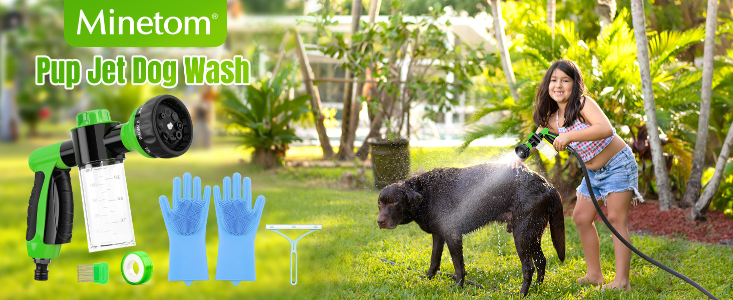 【Ideal Pet Grooming Supplies】The dog wash hose attachment kit includes green pup jet dog wash foam sprayer with dispenser bottle, dog shaving comb, pet comb, gloves, sealed tape. easy to grip, slip-resistant and comfortable fit, the dog brush provided to help you to massage and bath your dog, the pet grooming comb could allow you groom your dog.