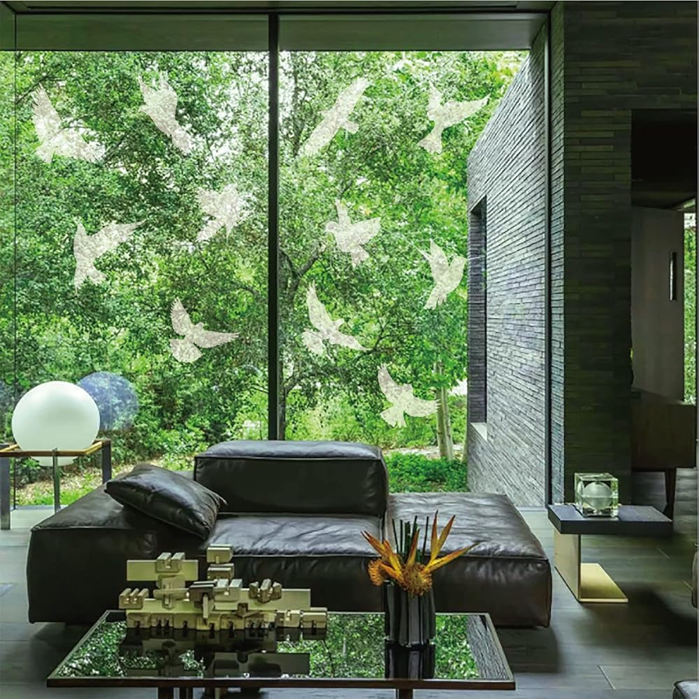 Transparent Matte Design: Each window cling is designed with reflective material which reflects sunlight as glowing warning alert for birds, fit for windows and patio sliding glass doors, frosted transparent and visible from outside and inside