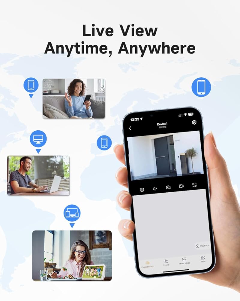[تطبيق مجاني ووصول عن بعد]: قم بتنزيل تطبيق EseeCloud المجاني للوصول عن بعد. يمكنك مشاركة الوصول مع عائلتك دون أي قيود. من السهل مشاهدة مقاطع الفيديو عن بعد على هاتفك أو جهاز الكمبيوتر أو الجهاز اللوحي.