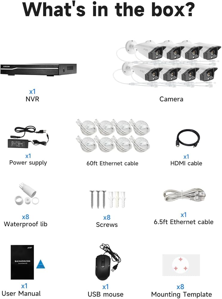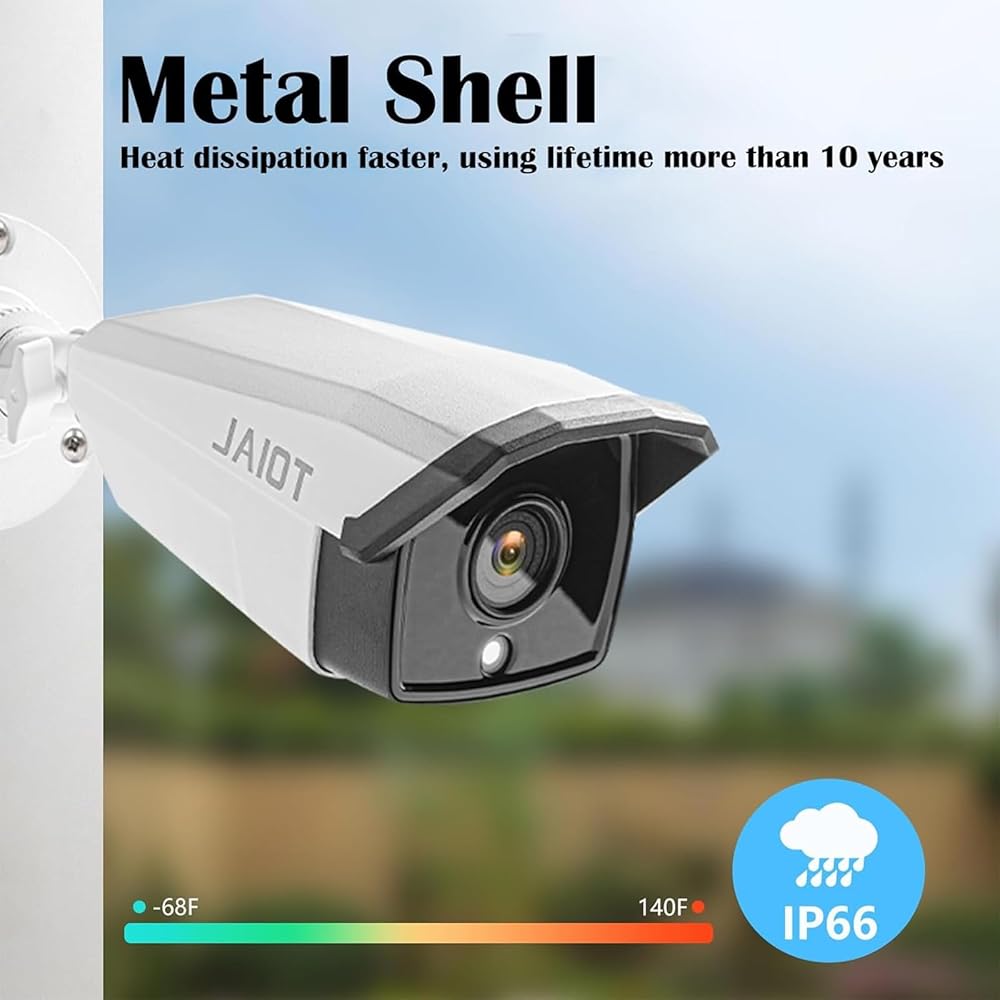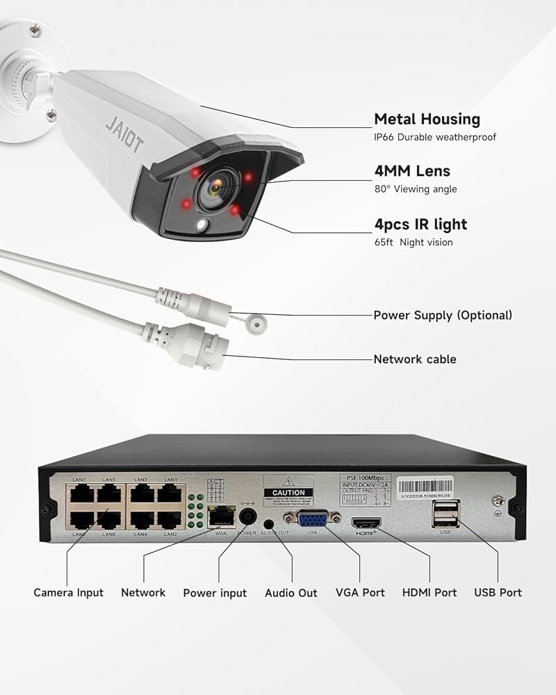 [4K Ultra HD]: نظام NVR خارجي JAIOT 4K وكاميرا PoE بدقة 4K Ultra HD (8 ميجابكسل، 3840 × 2160).