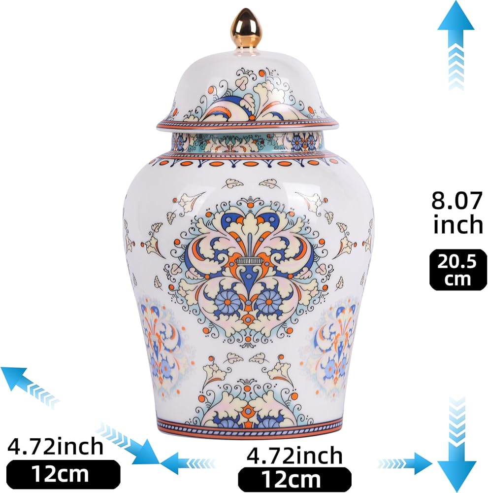 3.High-Quality Craftsmanship: Each jar is carefully crafted from high-quality porcelain, demonstrating the timeless charm of Chinese craftsmanship. The intricate patterns and delicate hand-painted details make each piece a unique work of art.Please check the size pic on each jar for more precise size information.