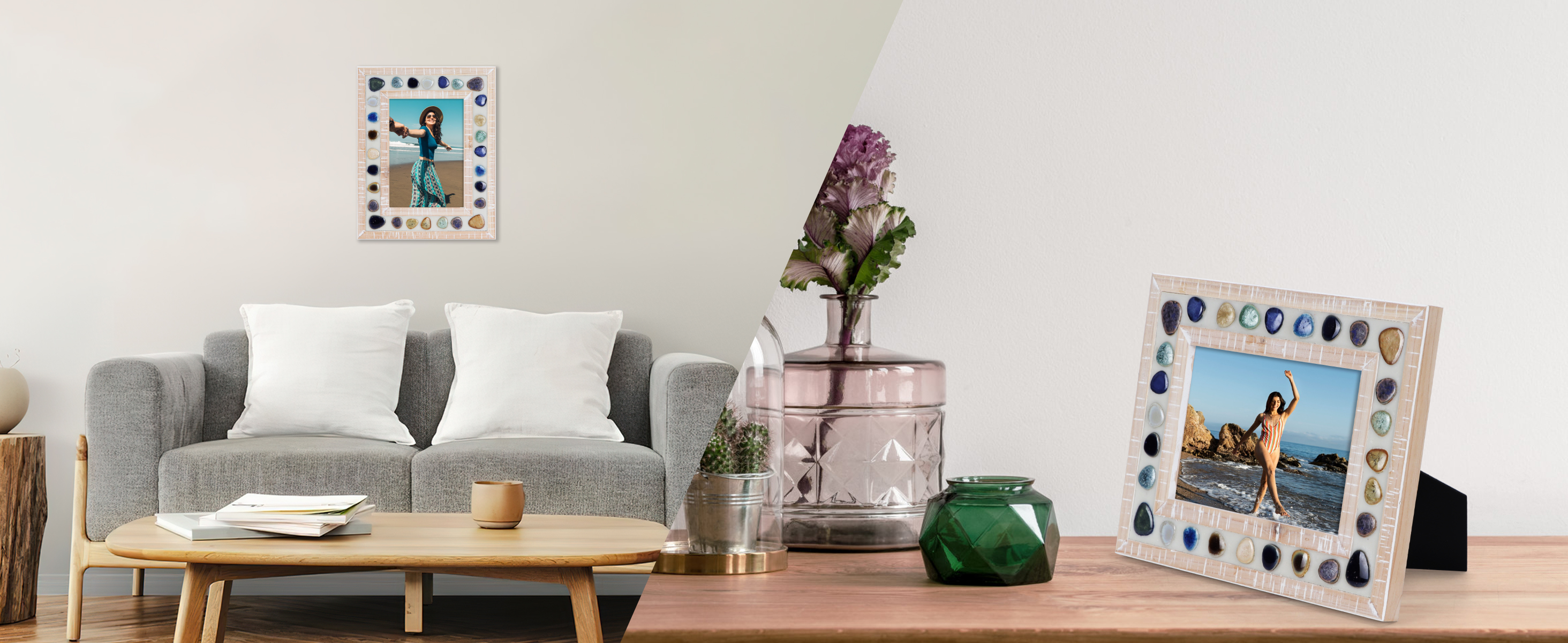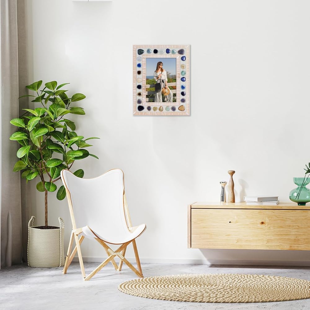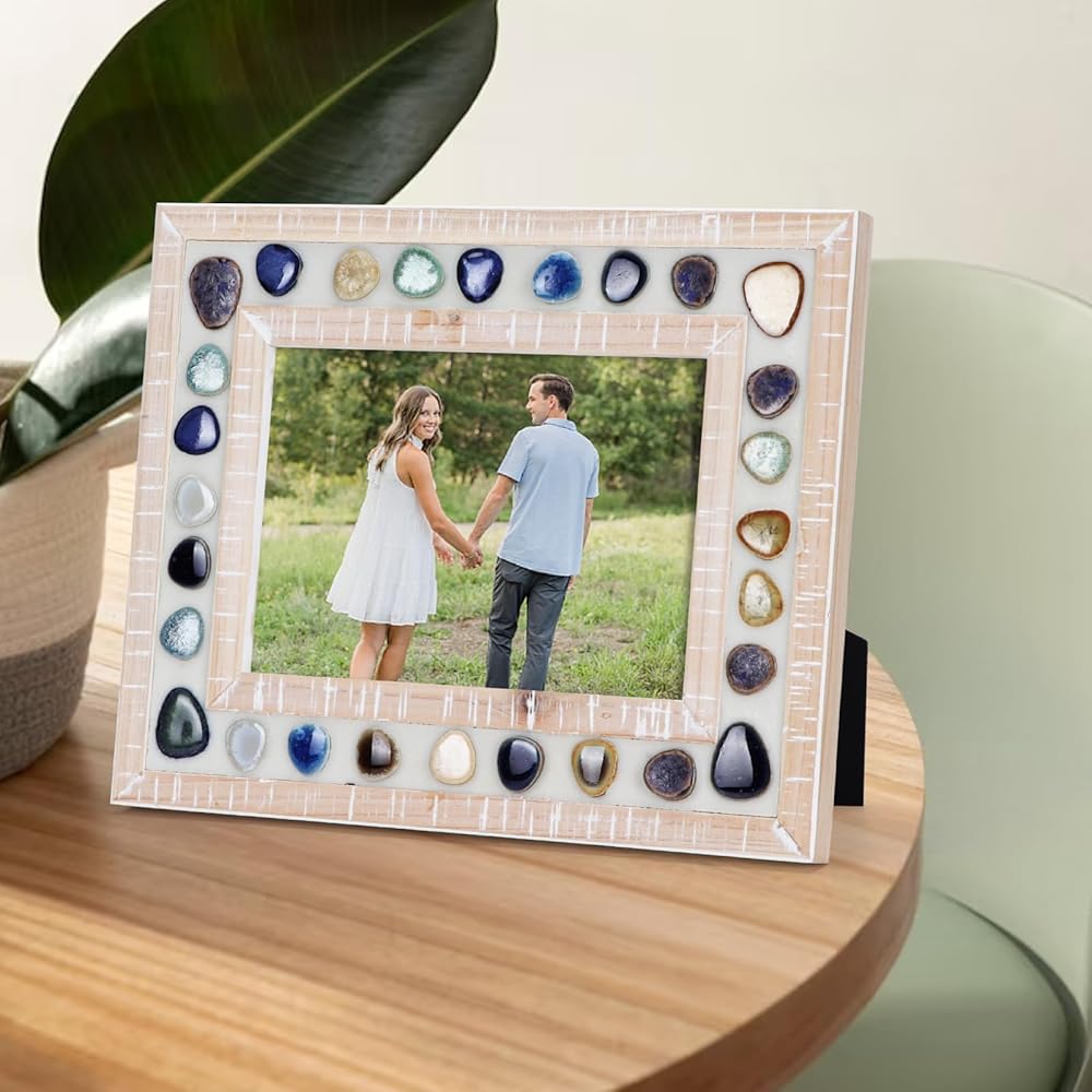 Stylish Design: This beautifully designed 5x7 picture frame combines a thick and wide wood photo frame with colorful ceramic patches to create a retro unique visual effect