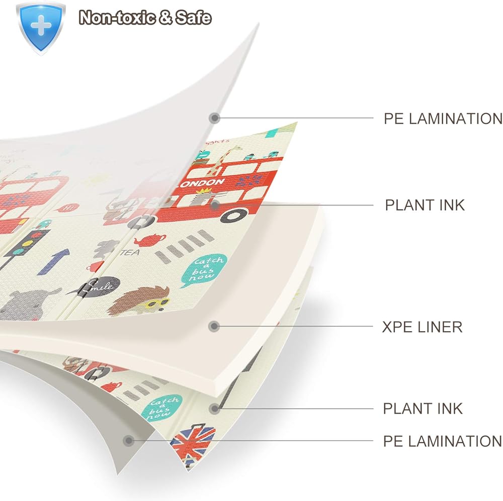 • مادة XPE عالية الجودة: سجادة لعب الأطفال الخاصة بنا مصنوعة من مادة XPE خالية من مادة BPA. الأنماط اللطيفة على بساط اللعب مطبوعة بحبر الزيت النباتي. ويتميز المنتج بالميزات التالية؛ خالية من البيسفينول أ، وغير سامة، ولا تبهت، ولا توجد رائحة كيميائية، مريحة وآمنة لزحف الأطفال. هذه سجادة مناسبة للأطفال الصغار وتضمن سلامة طفلك.