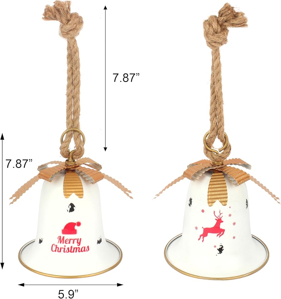 كلاسيكي وفريد من نوعه: تتم طباعة جانبي جرس عيد الميلاد بأنماط مختلفة لعيد الميلاد، ومصممان بتأثير صدئ، ومليء بالتفاصيل المعقدة والشخصية القديمة. الأجراس الريفية تدق حقًا عندما تهزها! ستضيف لمسة من الدفء والحنين إلى زينة عيد الميلاد الخاصة بك.
