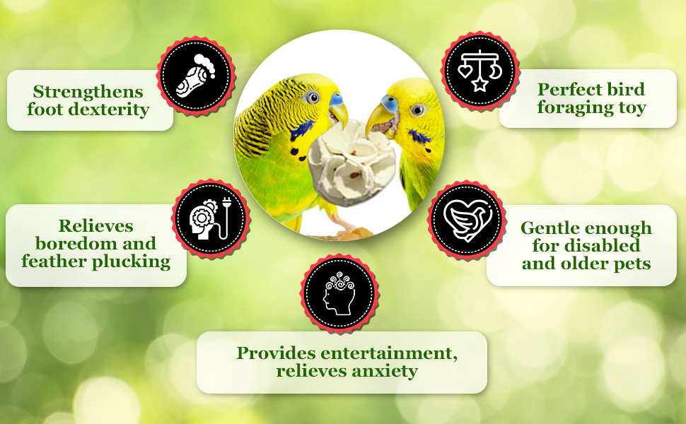 لعبة مثيرة لا تقاوم --- يتميز نبات سولا بملمس يشبه الفلين تجده الببغاوات لا يقاوم! يحب الكوكاتو حمل هذه الكرات الساحرة ورميها ثم الهجوم! كرات سولا من ميريك تجعل ببغاءك يصبح ببغاء. وأثناء التقاط لحظات اي جي هذه، يمكنك الاطمئنان إلى عدم وجود طلاءات أو أسلاك أو بلاستيك أو مواد ضارة تسبب مشاكل في البطن.
