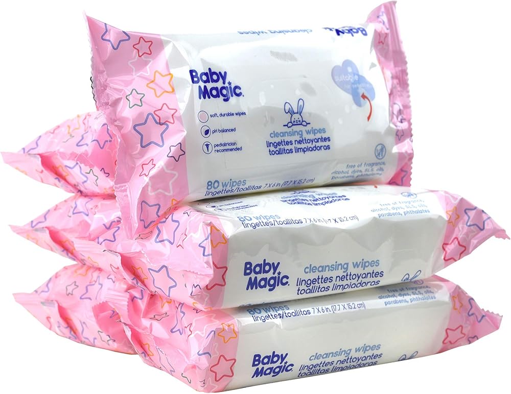 بيبي ماجيك مناديل مبللة لتنظيف الاطفال، خالية من العطور، 80 قطعة (عبوة من 6 قطع)