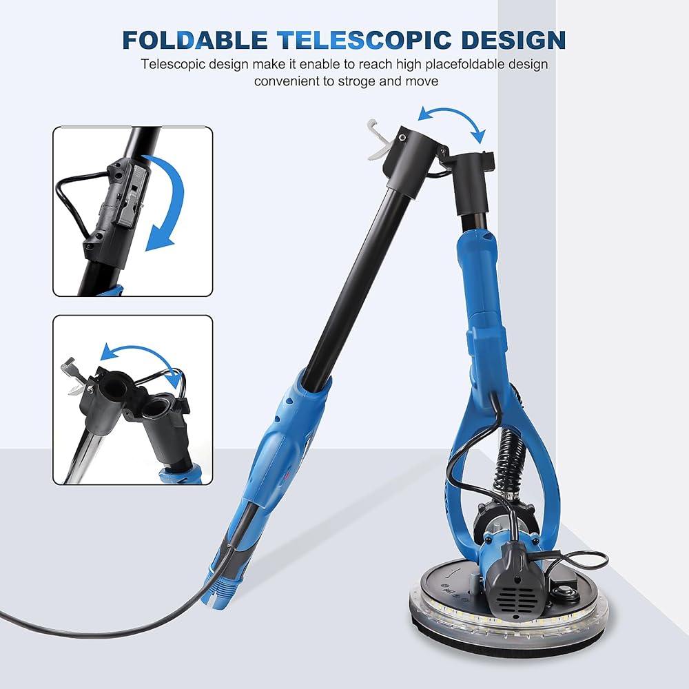 【تصميم خفيف الوزن وصغير الحجم】 ماكينة صنفرة الحوائط الجافة الكهربائية بتصميم مقبض قابل للطي مناسبة لك للتخزين في حالة عدم الاستخدام، كما أن ماكينة صنفرة الحائط الكهربائية بتصميم قضيب تمديد قابل للسحب، والذي يمكن تمديده من 43 بوصة إلى 71 بوصة، للتكيف لاحتياجاتك عند استخدامها على ارتفاعات مختلفة.
