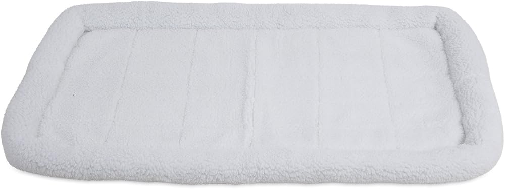 Precision Pet Crate Fleece Pad: A bumper and bed in one! The Precision Pet Crate Fleece Pad provides additional support for pets in crates, carriers, dog houses, SUVs, or anywhere your pet likes to spend time relaxing. SnooZZy Crate Pads are ideal for dogs that prefer to sleep curled up. The Fleece Pad features a two-inch bumper for pets to burrow against. The luxurious cozy fabric keeps pets cool in the summer and warm in the winter. Crate Fleece Pads also roll up for easy traveling and storage. Crates can even be folded with the Crate Fleece Pad inside! Completely machine washable with no liner to unzip. Size: 24”(Length) x 18” (Width). Color White.