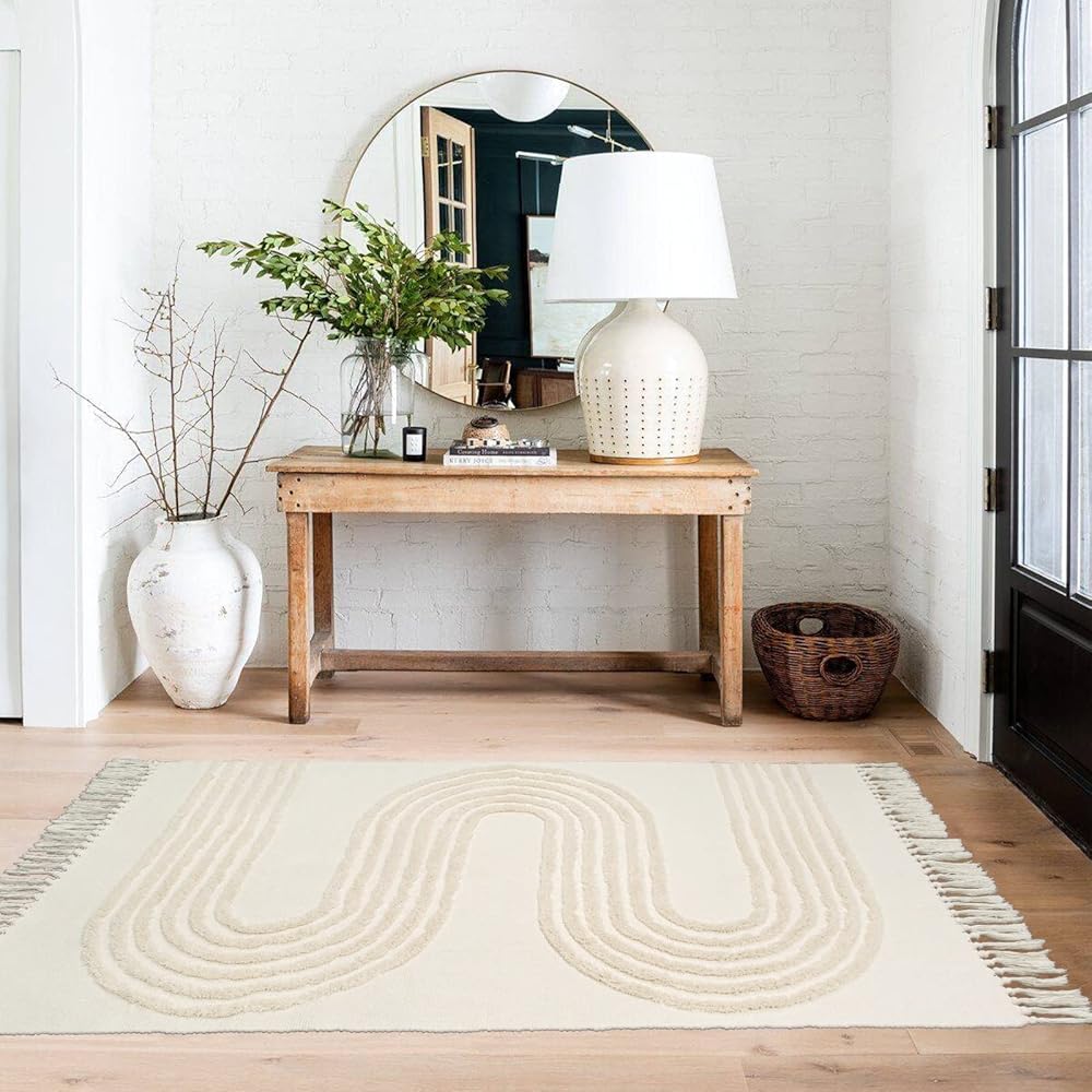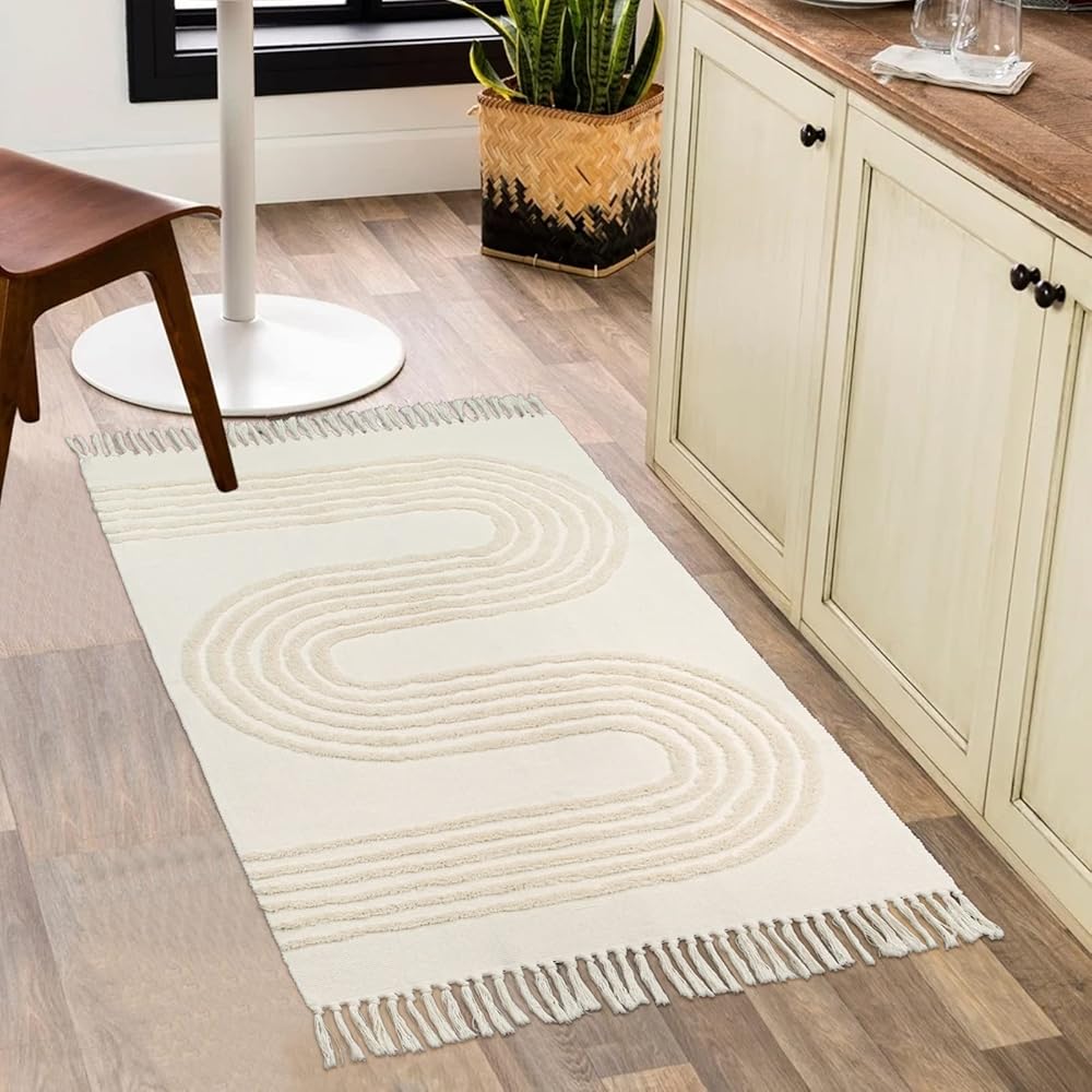 تصميم معنقدة ثلاثي الأبعاد: تم تزيين مفرش سجادة المطبخ بخصلات متناغمة تتميز بتأثير مرتفع ومنخفض. مظهر مثالي أنيق لبيت المزرعة وأجواء عطلة بوهو مريحة