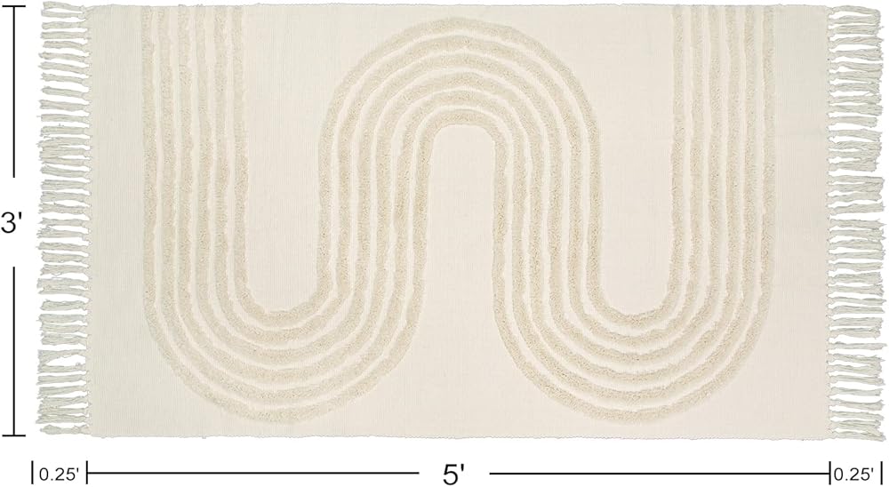 سجادة العداء البوهيمي: تتميز هذه السجادة الهندسية بلمسة الأبعاد في نمط خطي متحد المركز. اصنع نمطًا بسيطًا محايدًا. مهدب حول الحواف، حوالي 0.25 بوصة لكل جانب