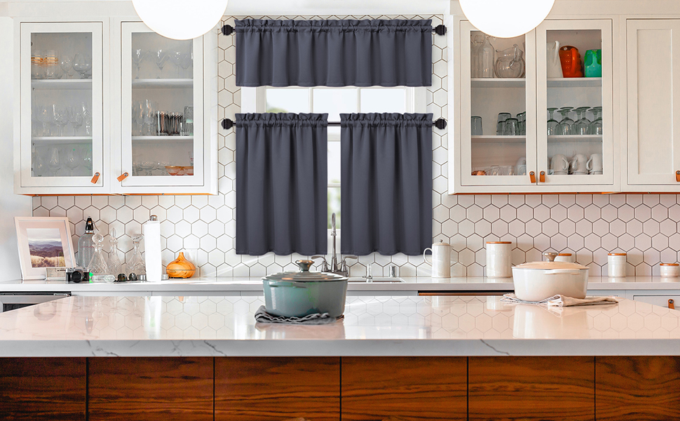 • 💯【خامة عالية الجودة】- ستارة مطبخ نانان مصنوعة من نسيج معتم ثلاثي النسيج، والذي يمكنه حجب 85-99% من أضواء الشمس والأشعة فوق البنفسجية (اللون الداكن يعمل بشكل جيد)، ملمس ناعم وسلس.
